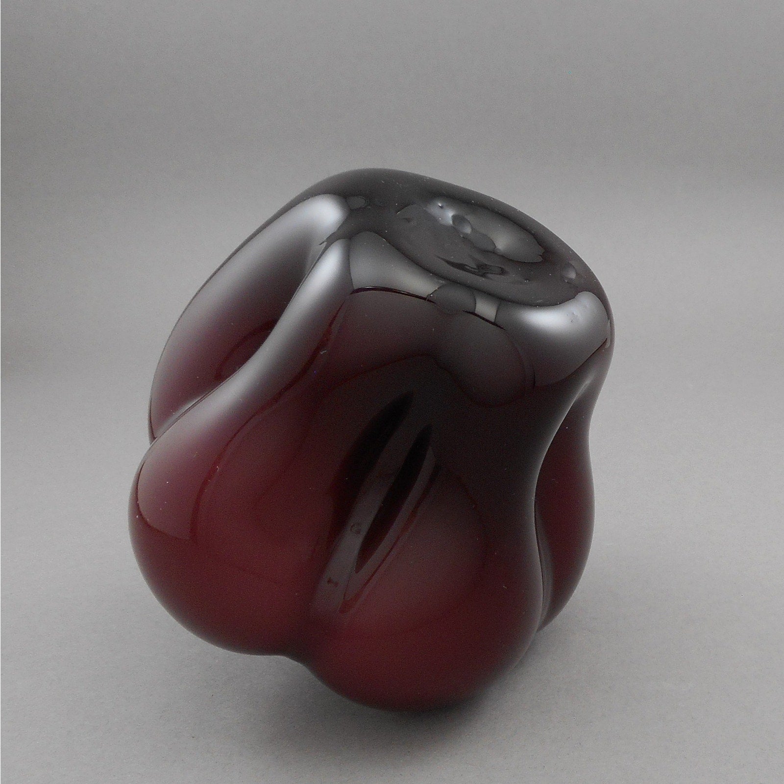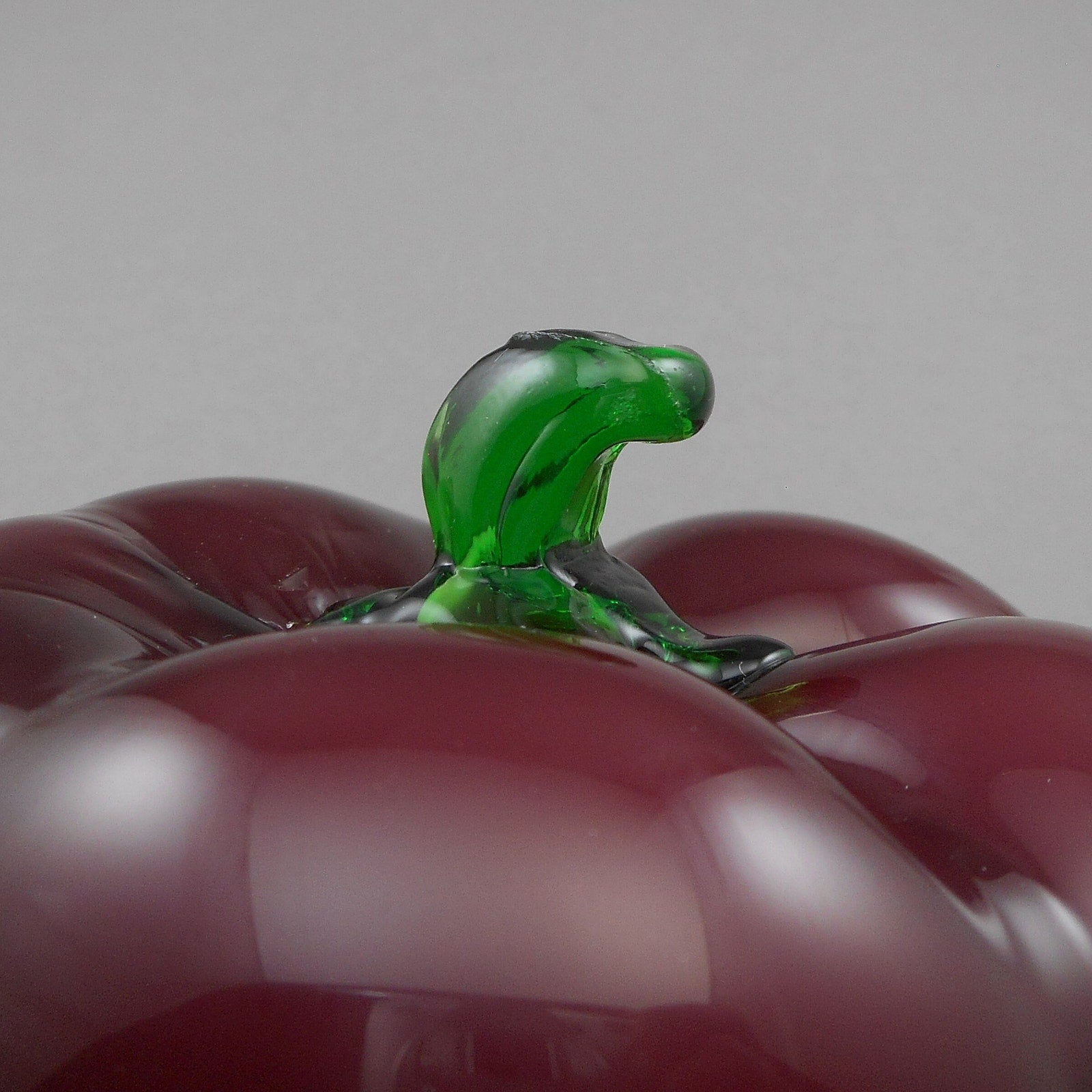 Vintage hand made, blown glass pepper paperweight, maker unknown. Of purplish brown and green glass.