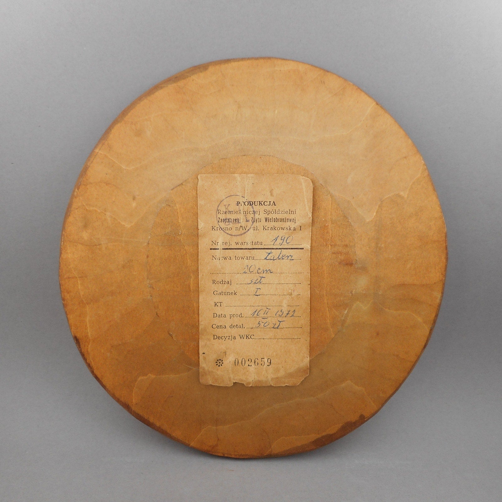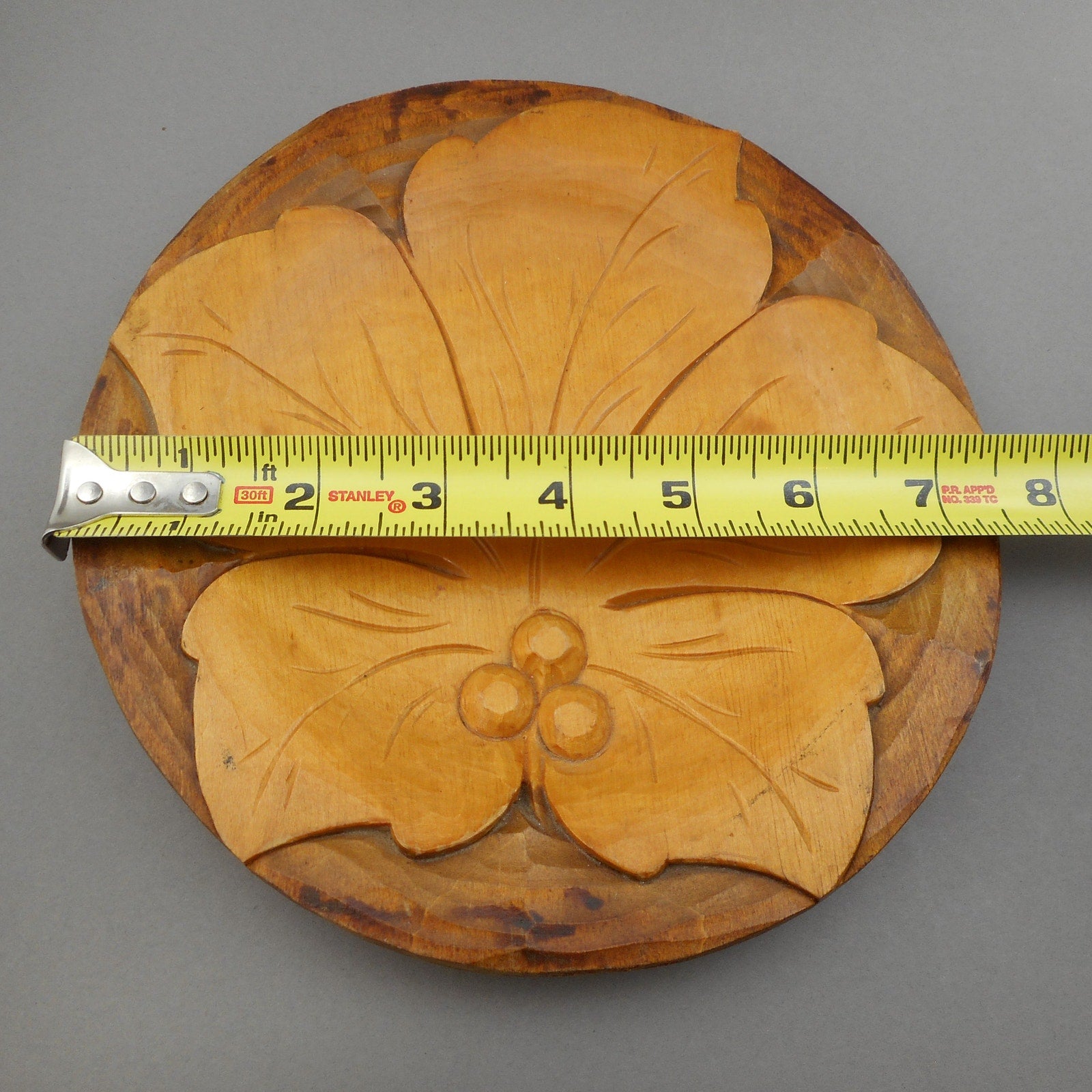 Authentic Vintage Polish Folk Art Hand Carved Wood Plate - Dated 1972 with Maker's Label - Leaf Design - Made in Poland