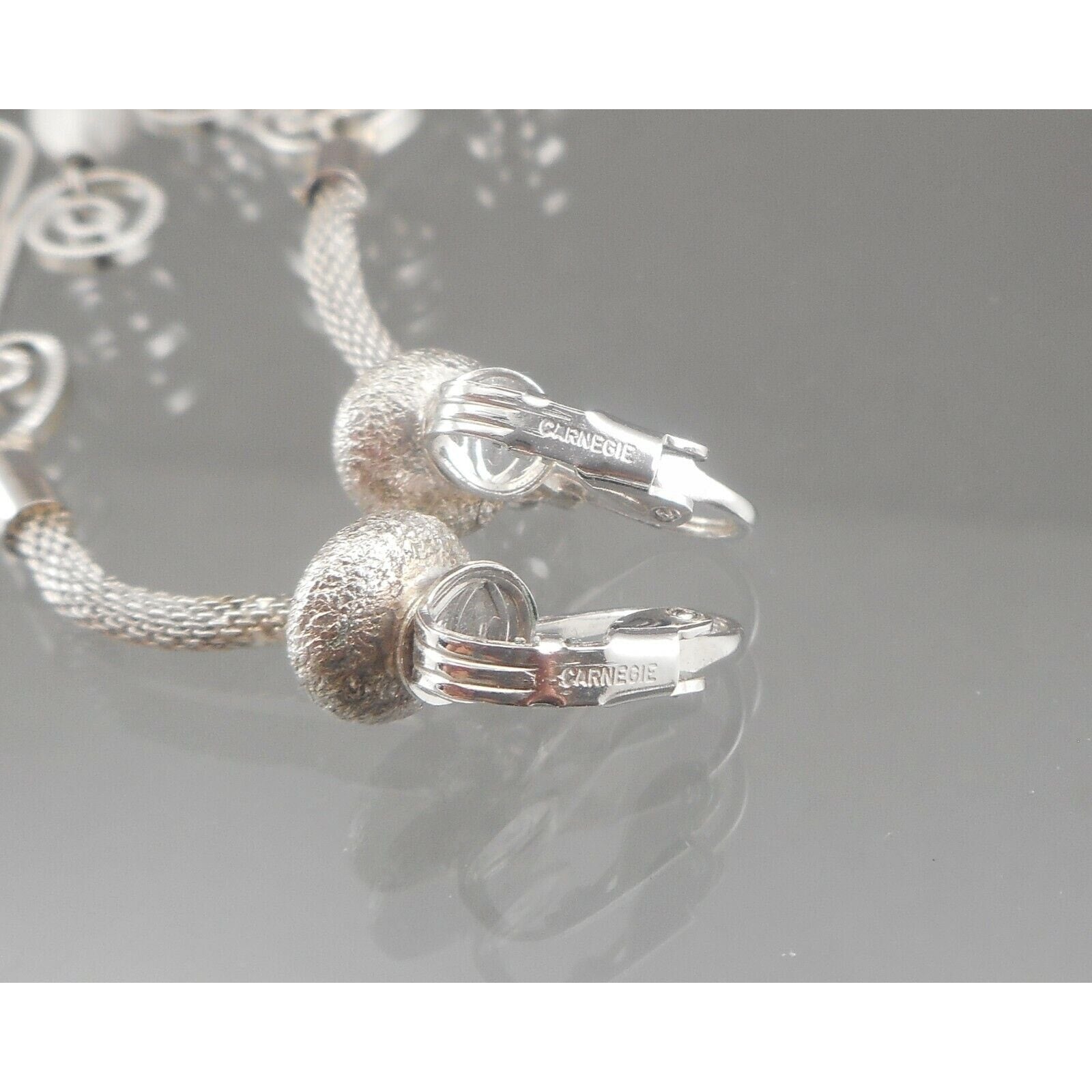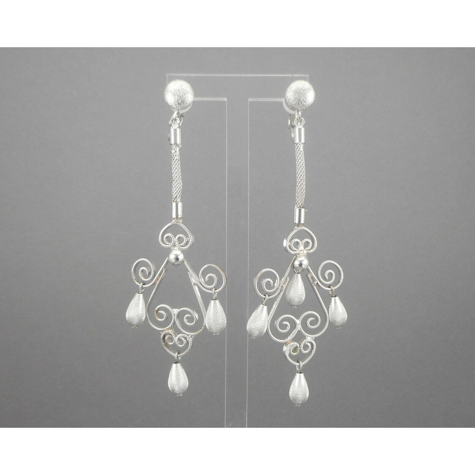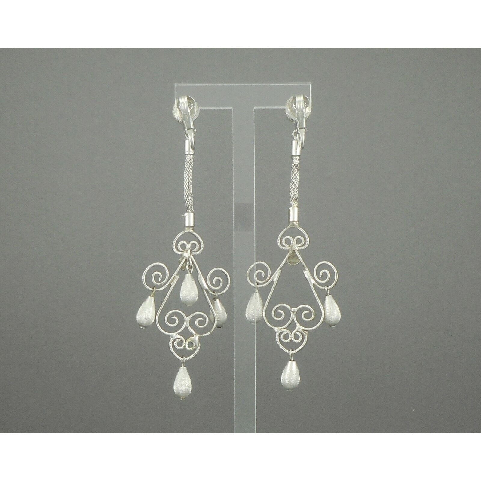 4" Vintage Carnegie Clip Chandelier Earrings Brushed Silver Tone Teardrop Beads
