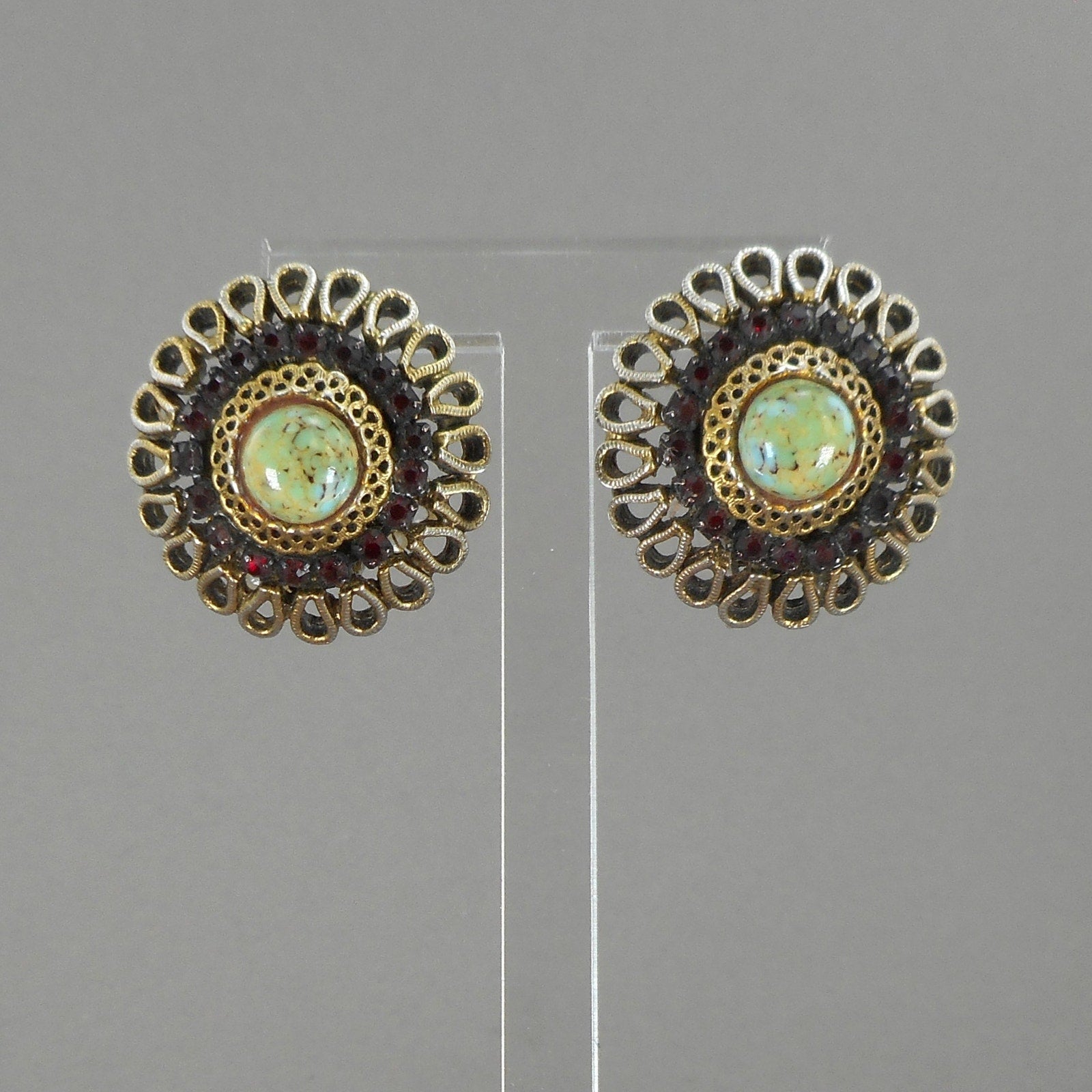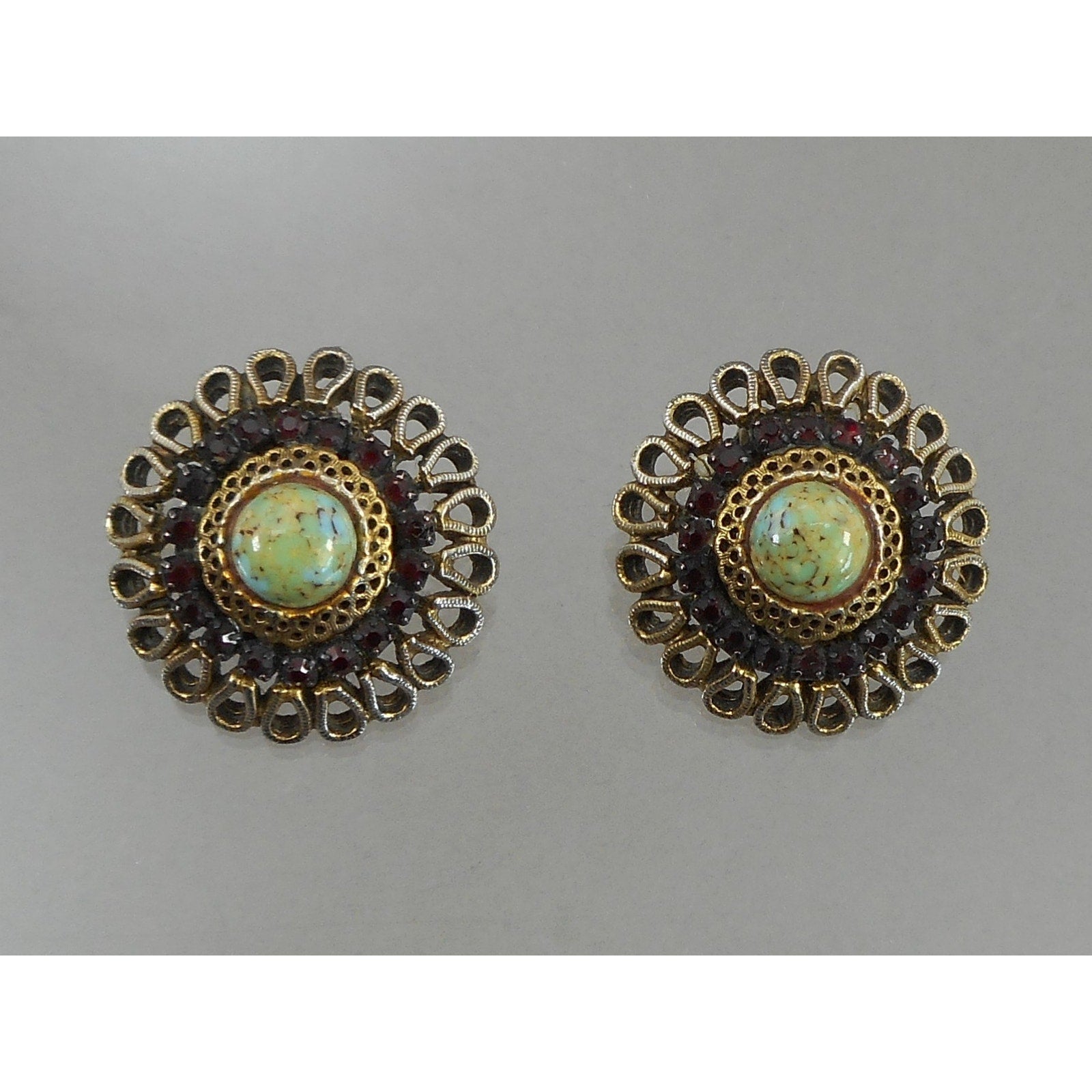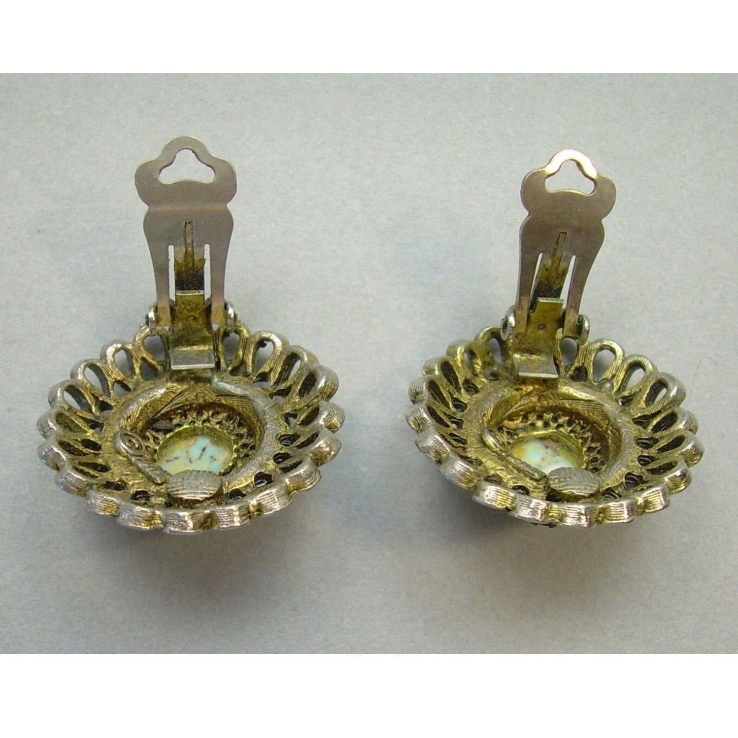 These earrings are in excellent vintage condition with all stones in place. There is some finish loss, but it is mainly on the clips.