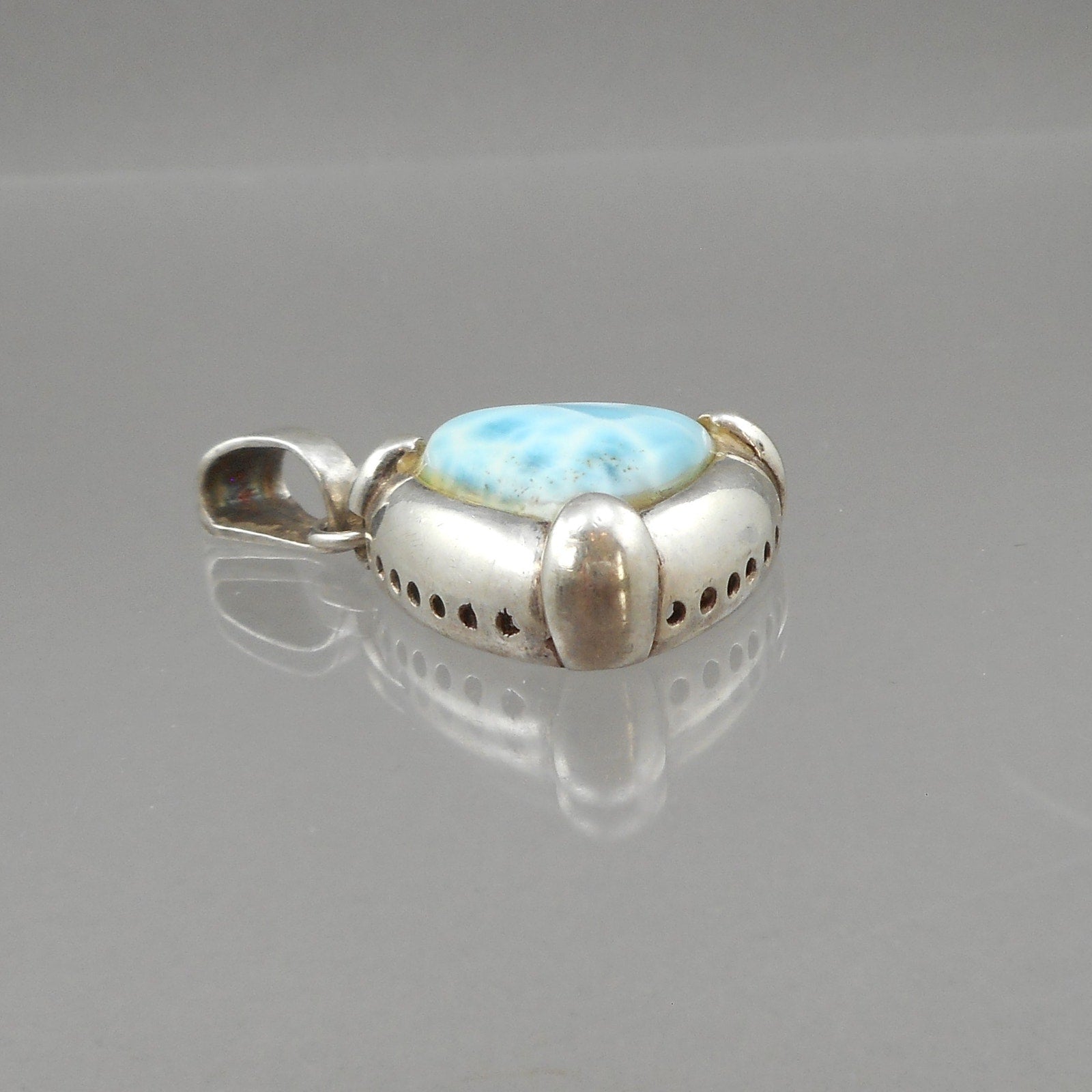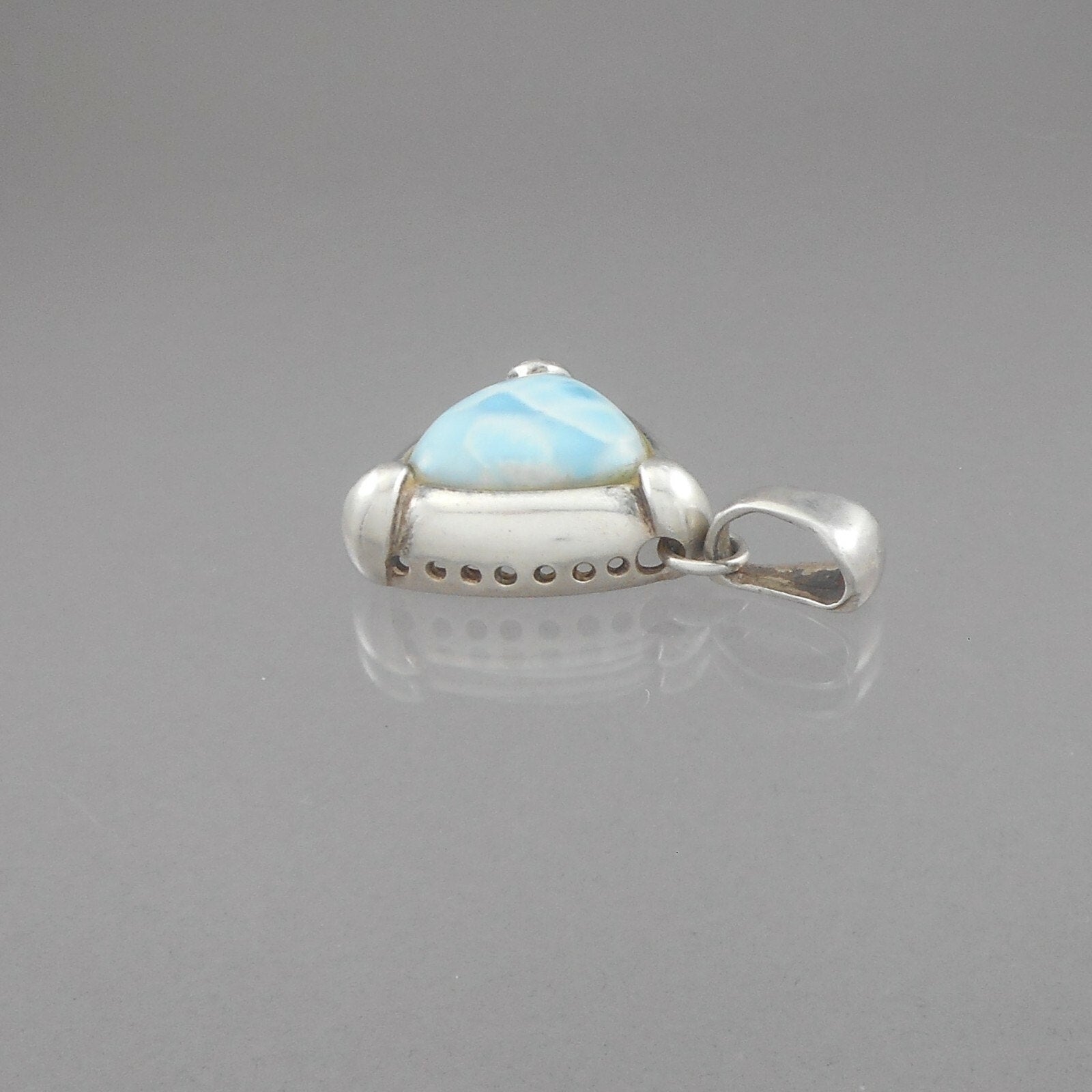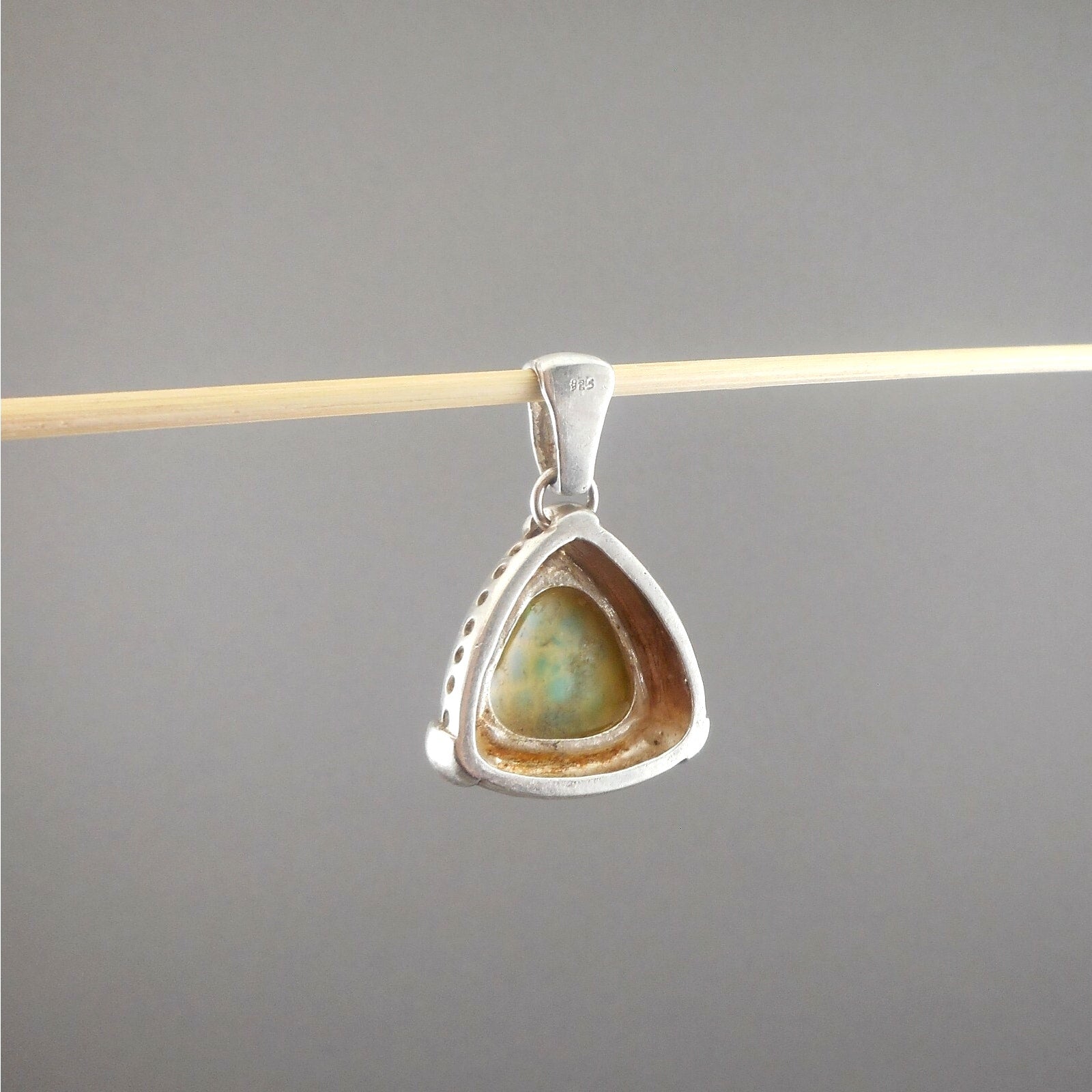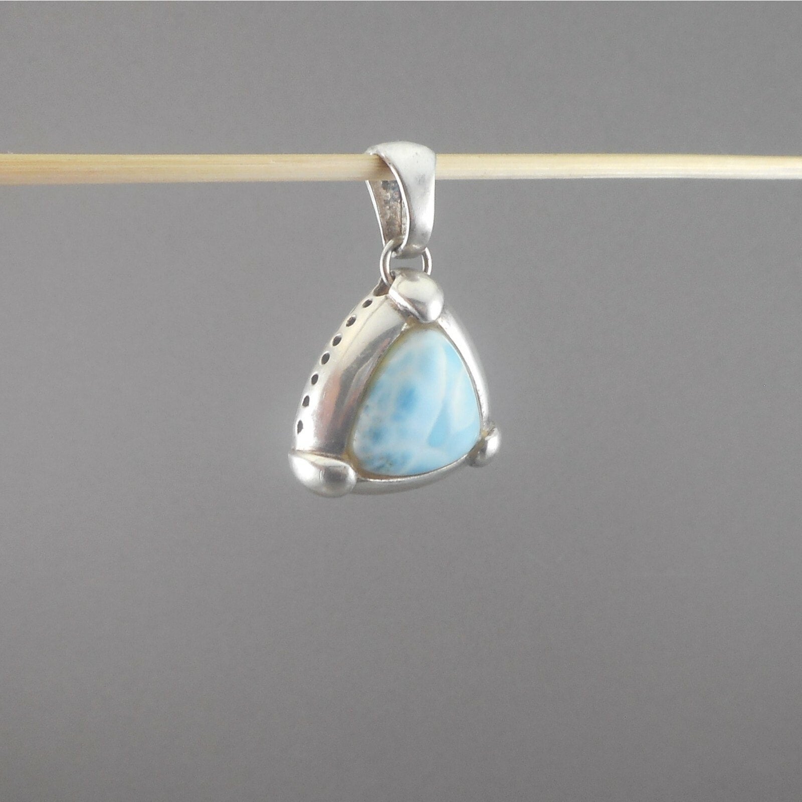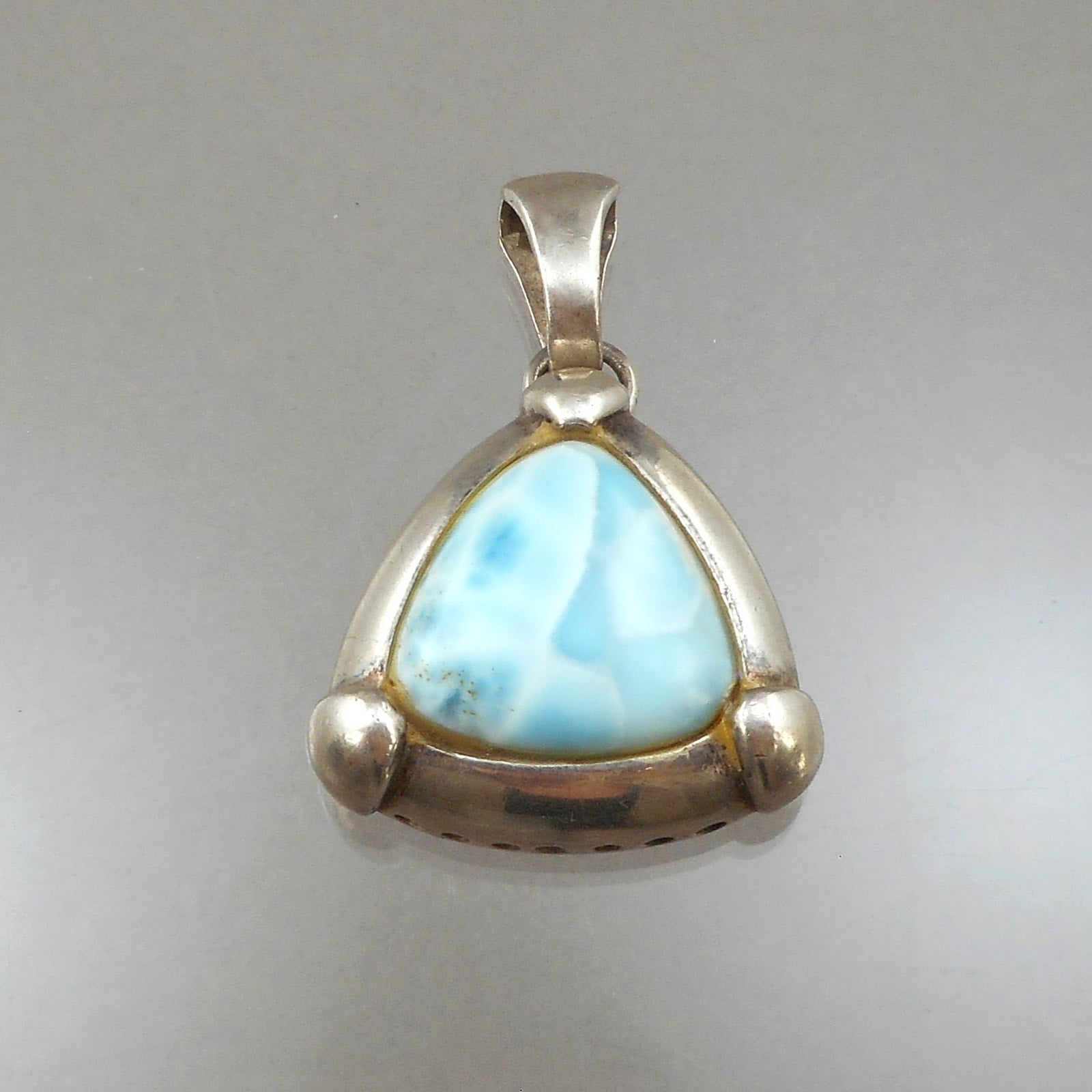 Vintage Blue Larimar Sterling Silver Triangle Pendant - Natural Gemstone - circa 1980 - Southwestern Style. Maker unknown, marked 925 in the bail.