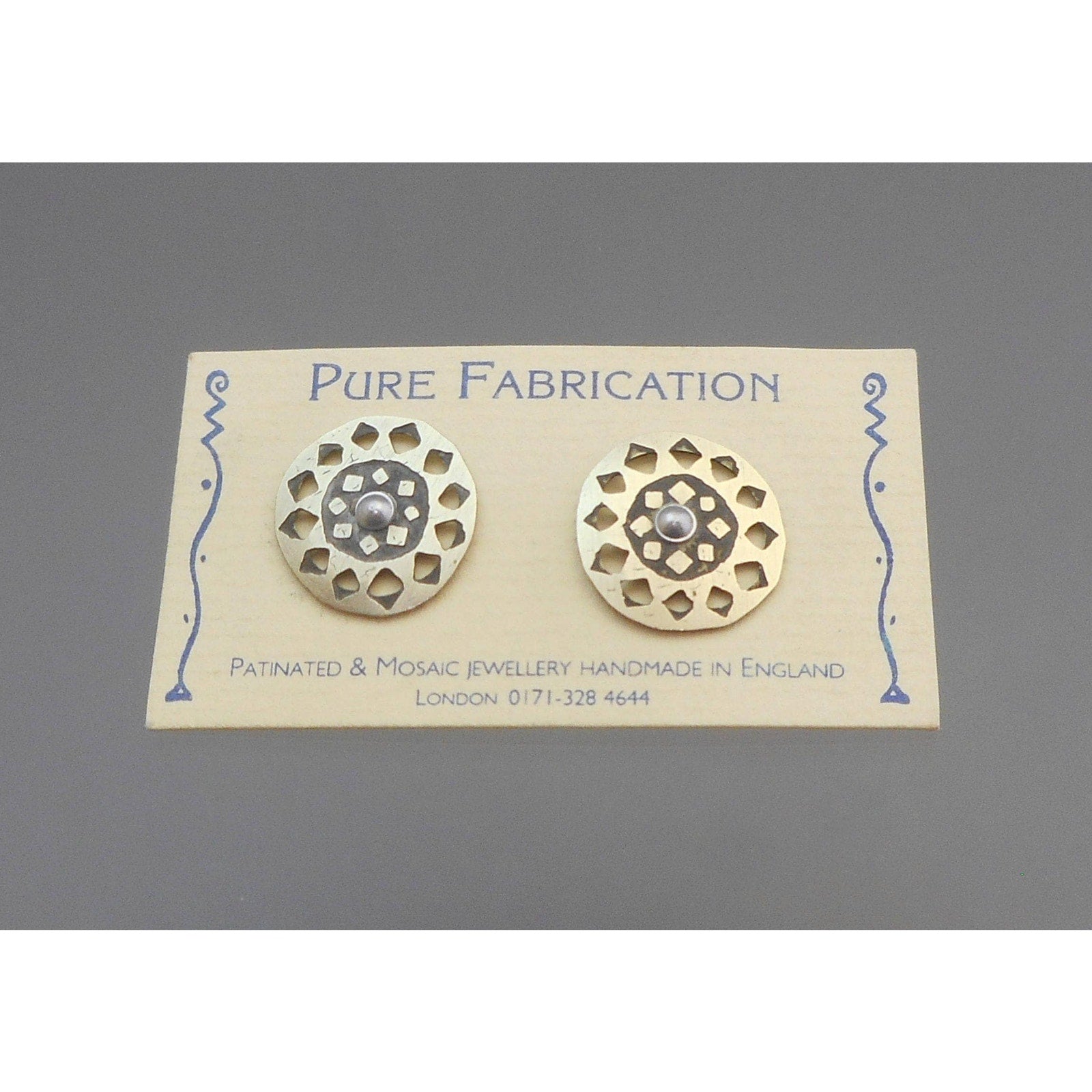 Vintage Pure Fabrication Silver Sun Design Post Artisan Earrings Handmade England
