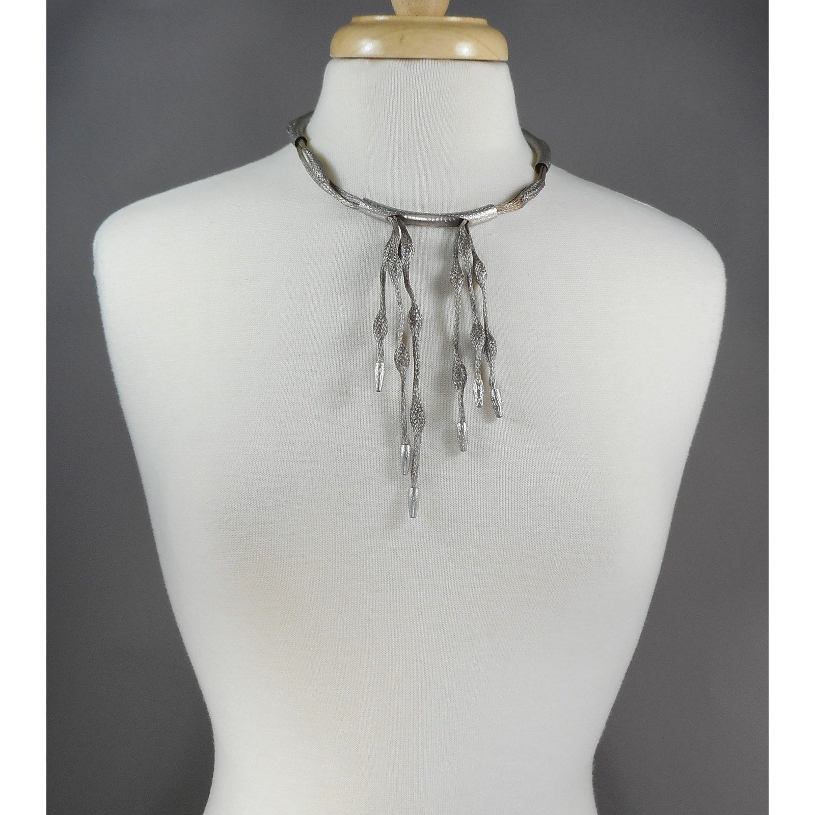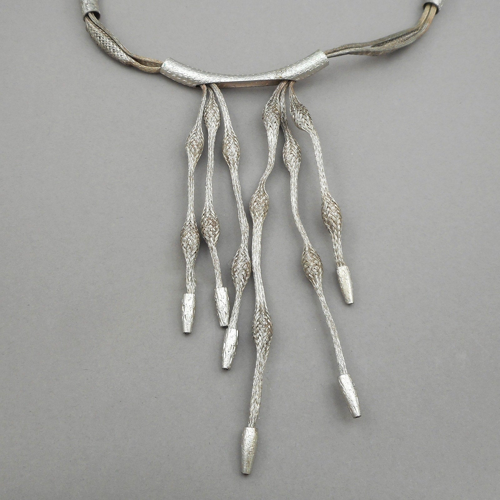 Vintage Sarah Cavender Metalworks Jewelry Fringe Pendant Necklace - Braided Silver Tone Wire Mesh and Tubes - American Artisan - Handmade in USA
