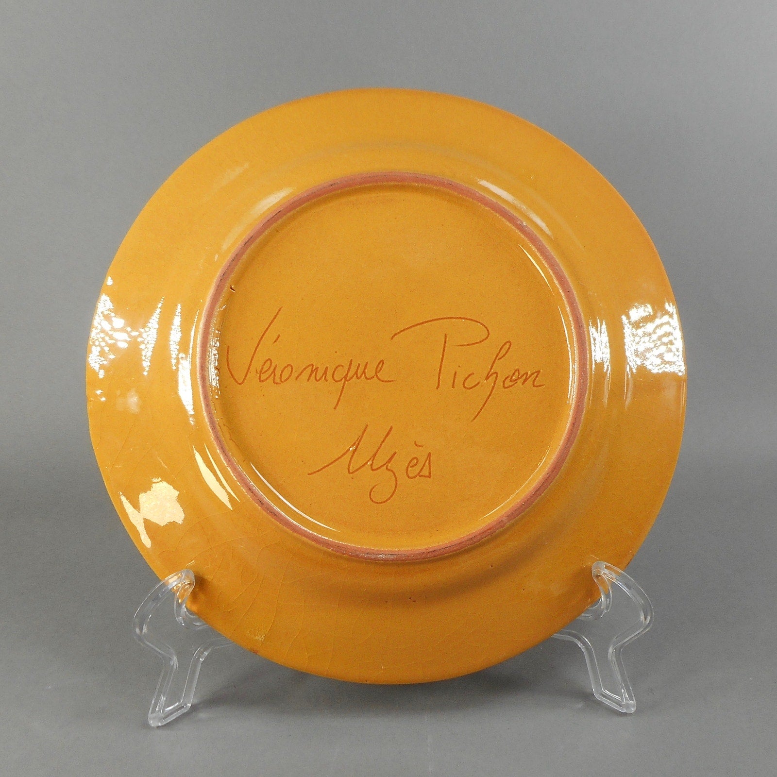 4 Vintage Handmade Veronique Pichon French Rose Design Salad Dessert 8" Plates - Studio Artisan Pottery, Uzes, France