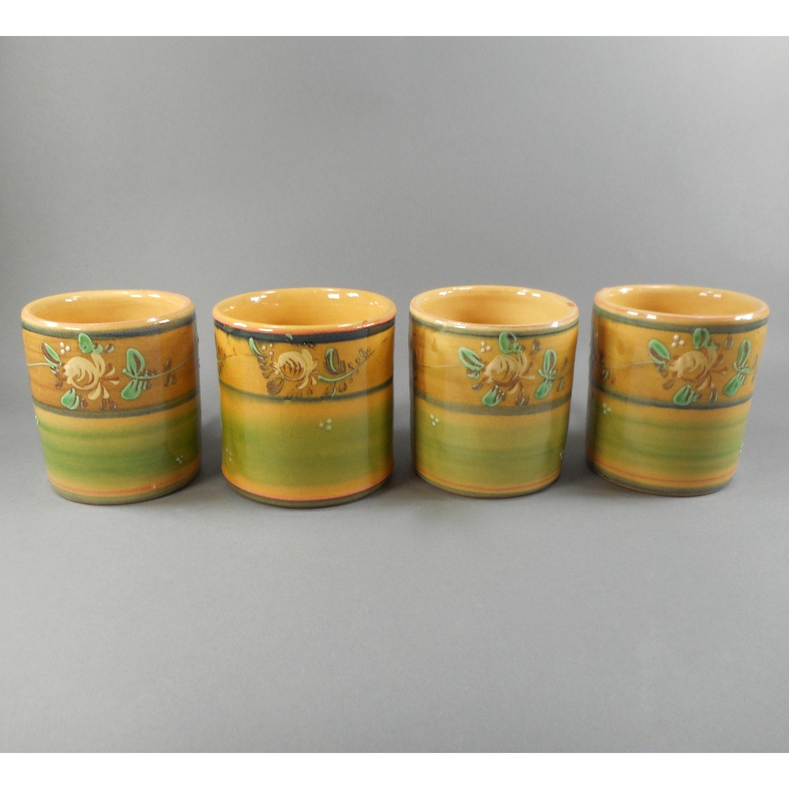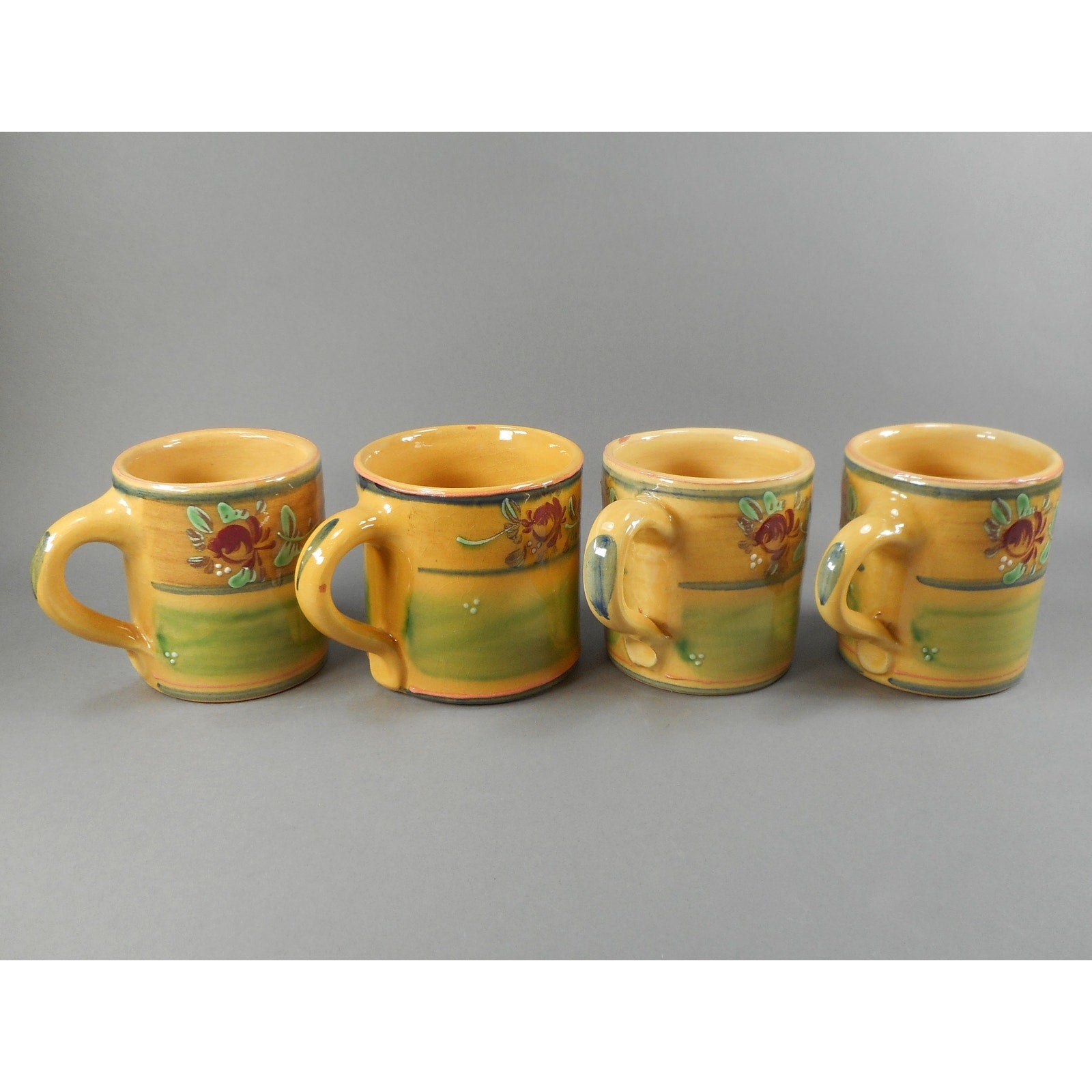 4 Vintage Veronique Pichon French Rose Design Mugs - Artisan Pottery, Uzes, France