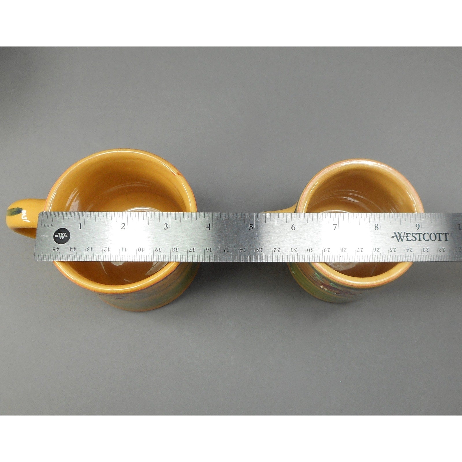 Pre-owned condition with distressing and crazing common to this brand / line of pottery. Color and glaze variations are characteristic of handmade studio pottery. One of the mugs has a chip and hairline, shown in the last photo.