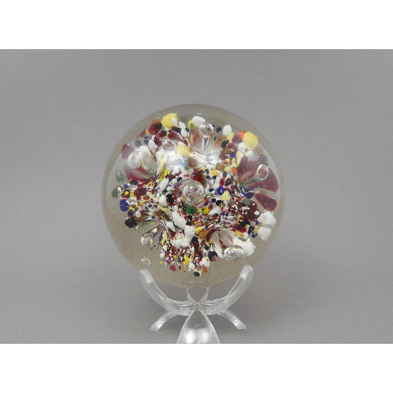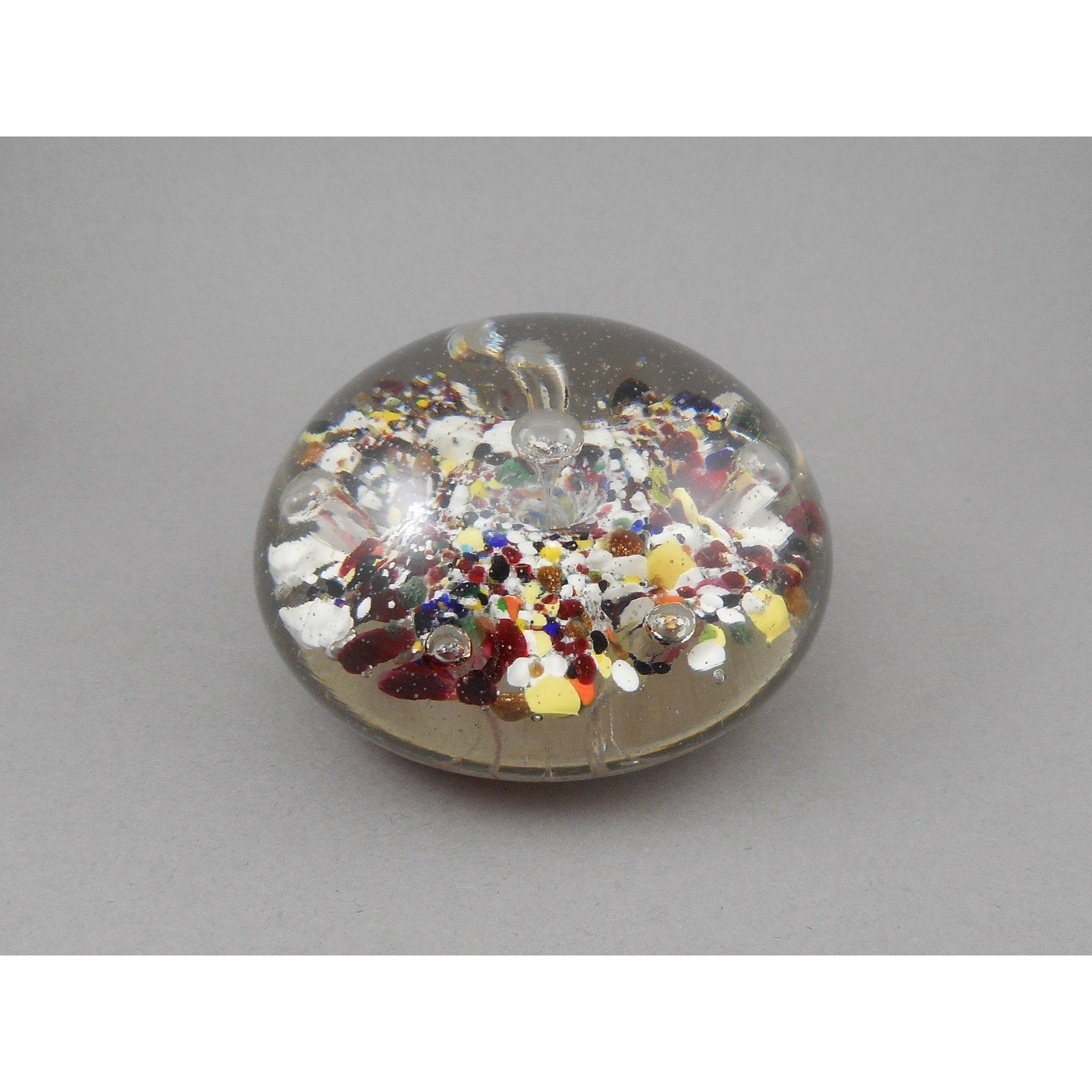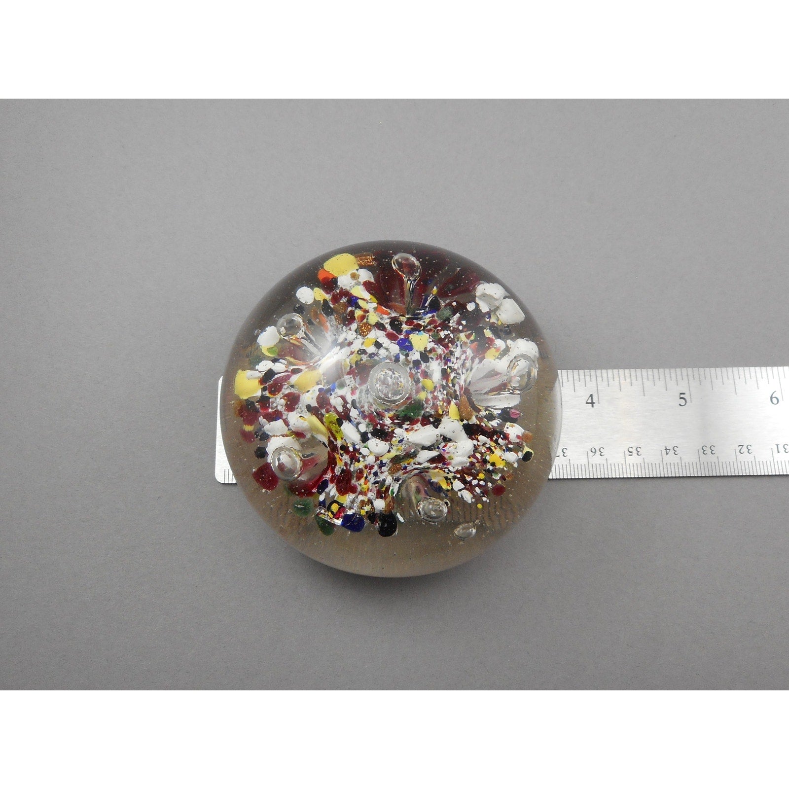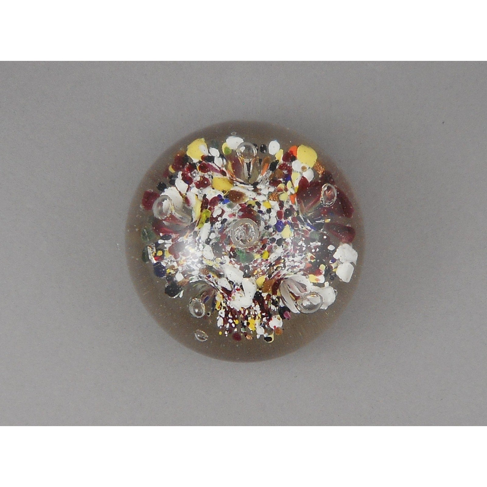 Excellent Antique Art Glass Paperweight - Handmade, Multicolor with Gold & Bubbles. Clusters of tiny gold flecks within multicolor frit.