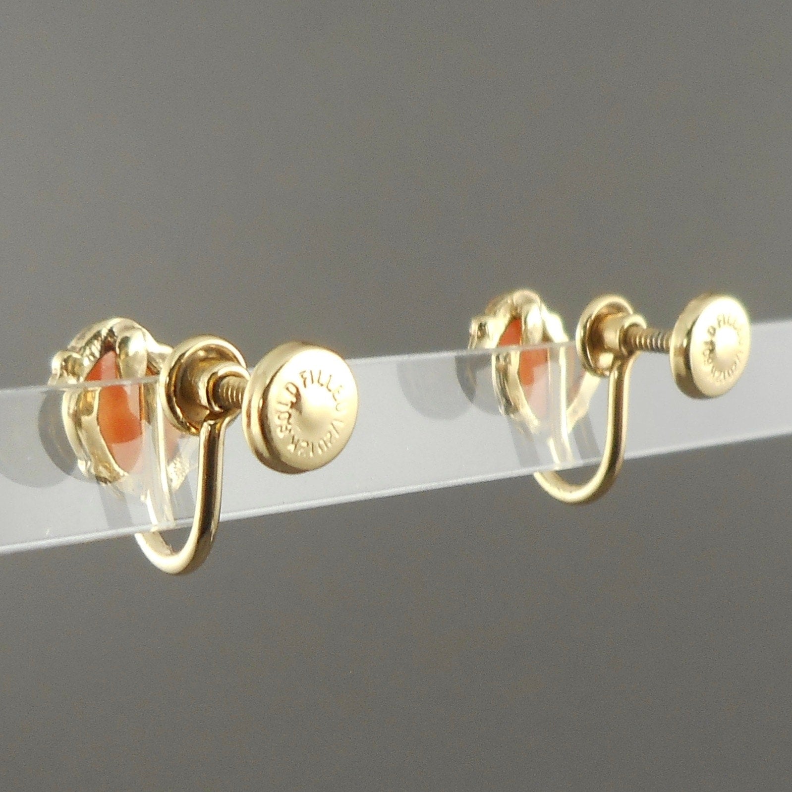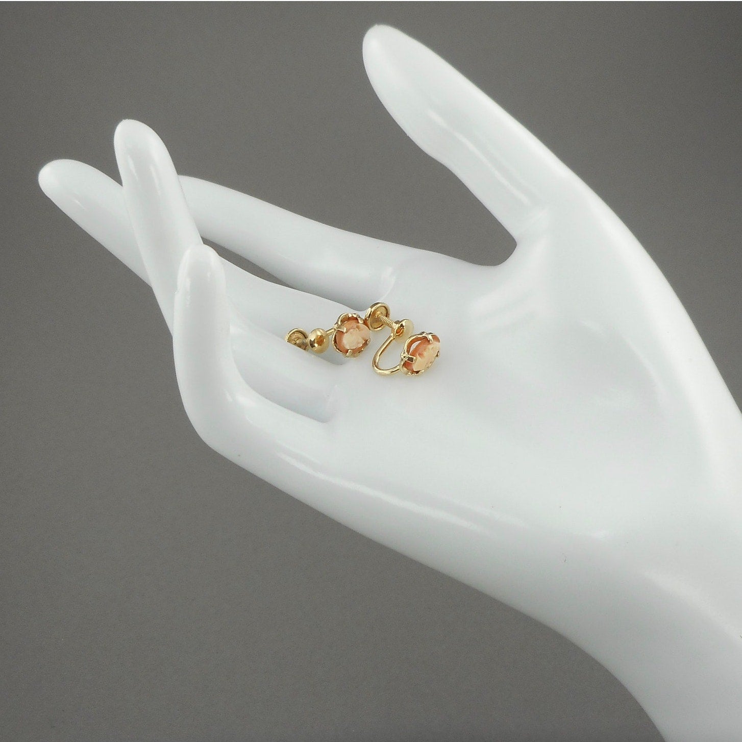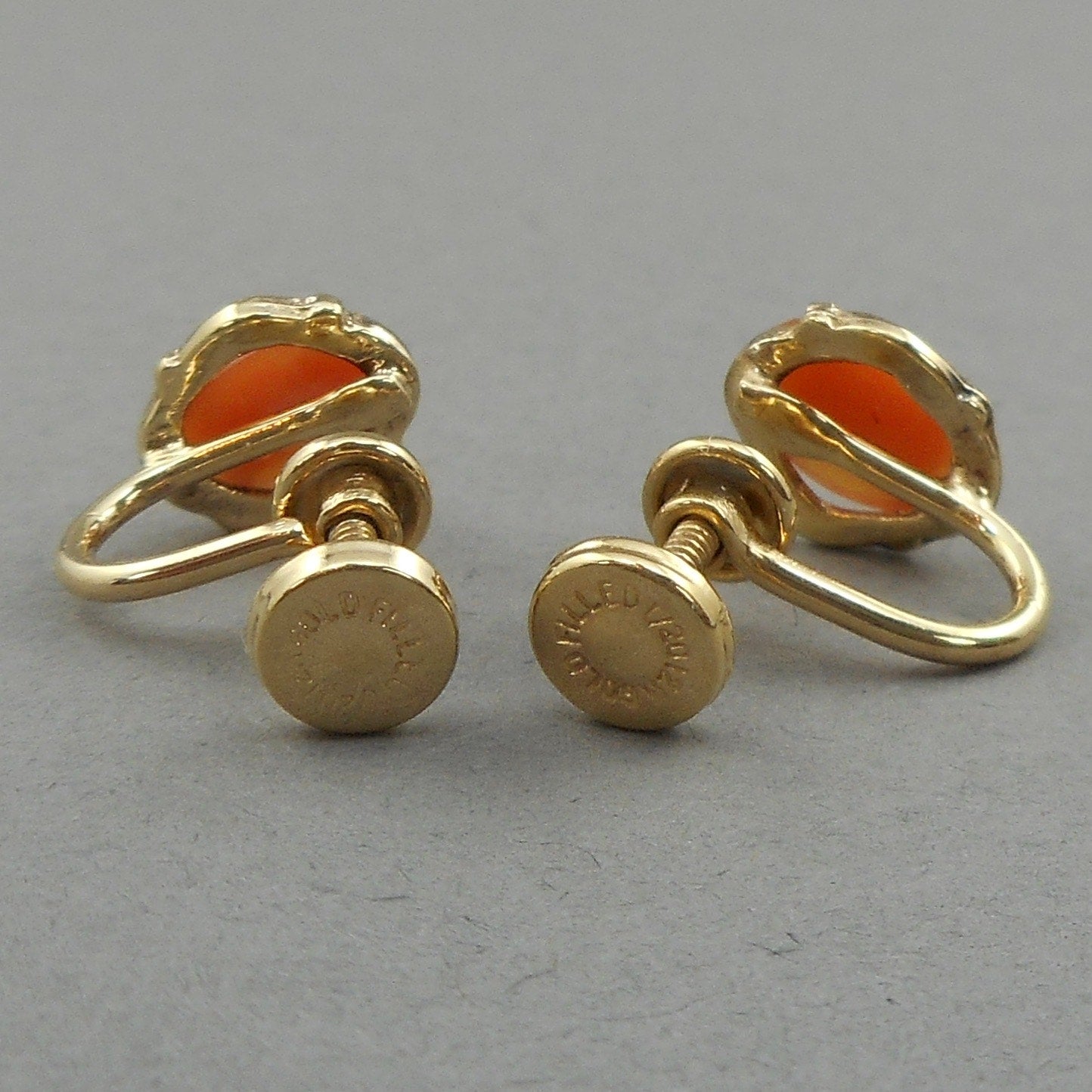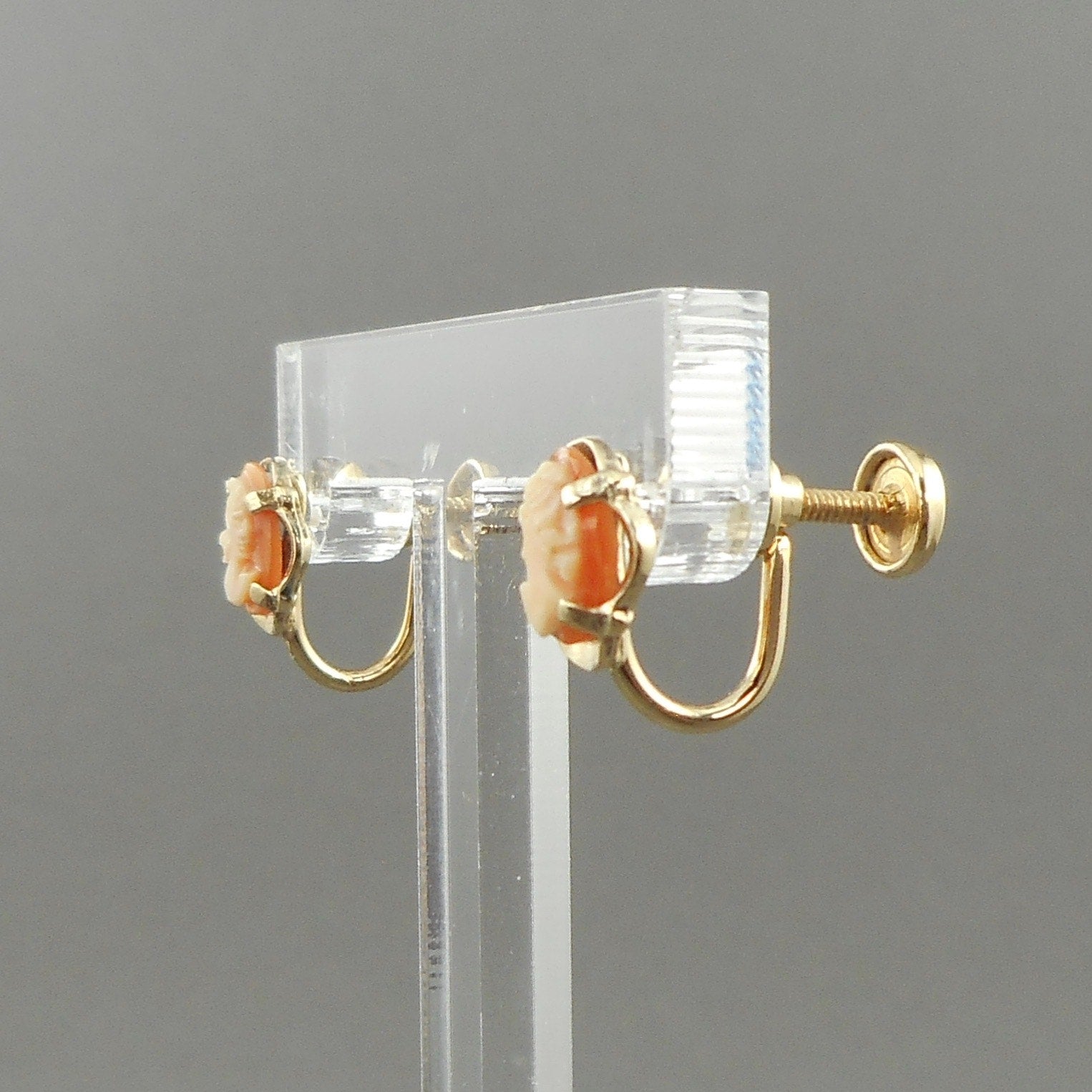 Pair of Tiny Vintage 12K Gold Filled Carved Shell Cameo Screw Back Earrings
