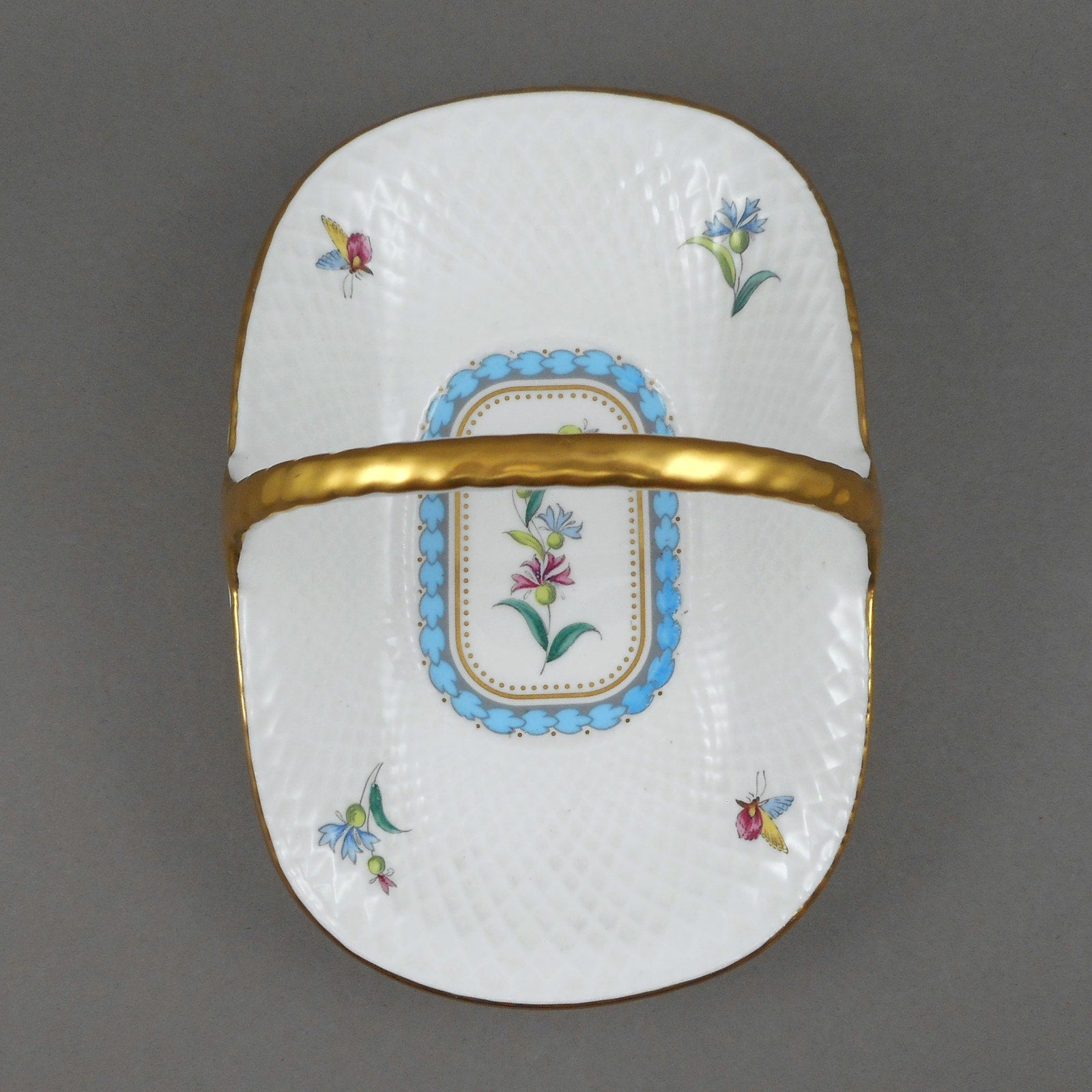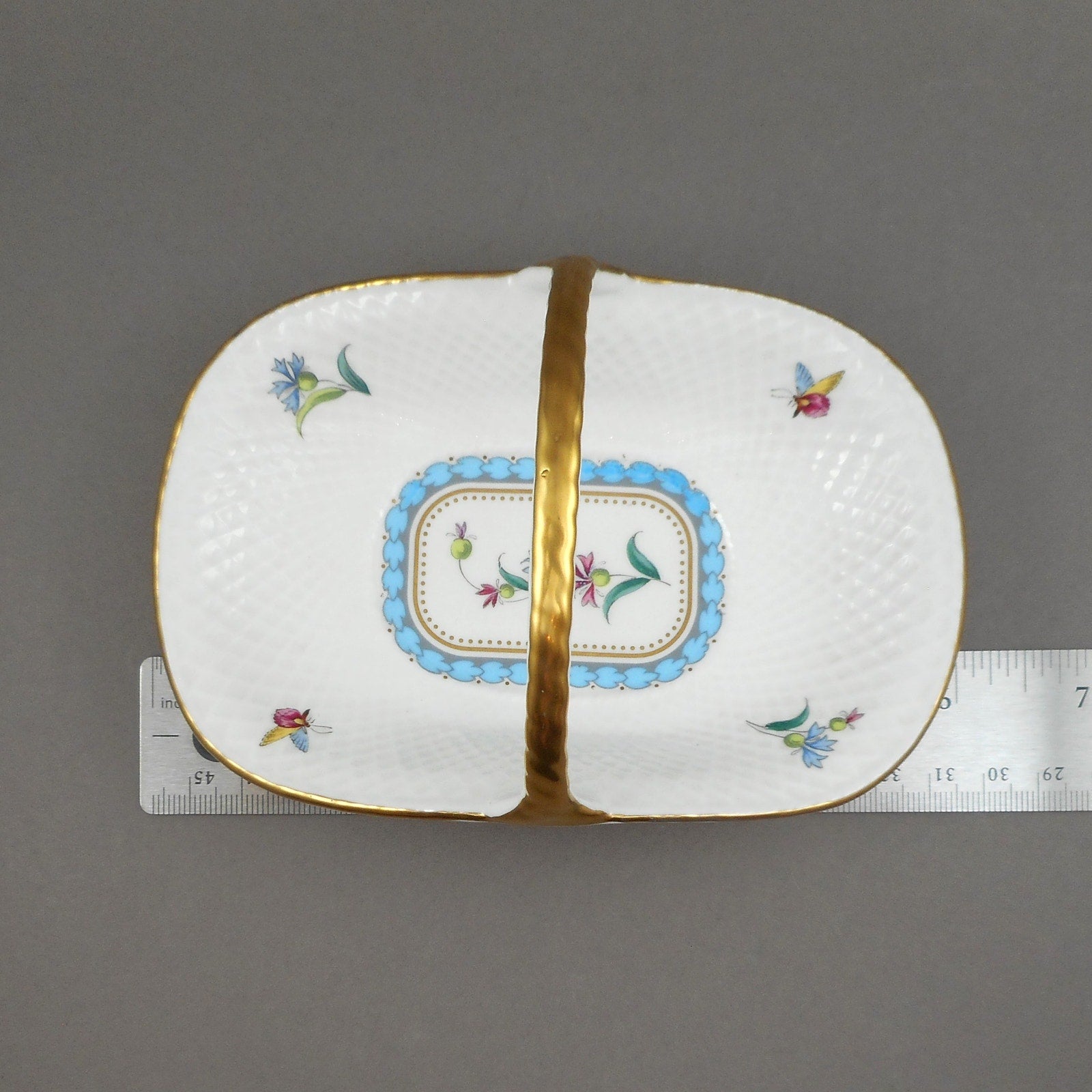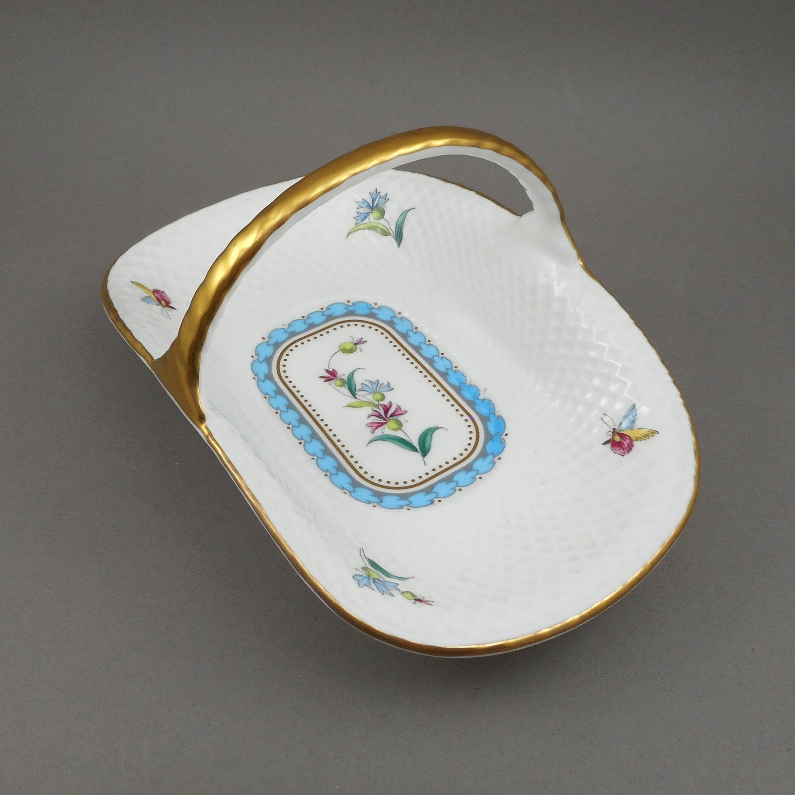 Spode Trapnell Sprays Basket Gold Handle Trinket Candy Dish - Vintage English Fine Bone China - Circa 1990, Pattern Retired 2004 - Flowers and Butterflies