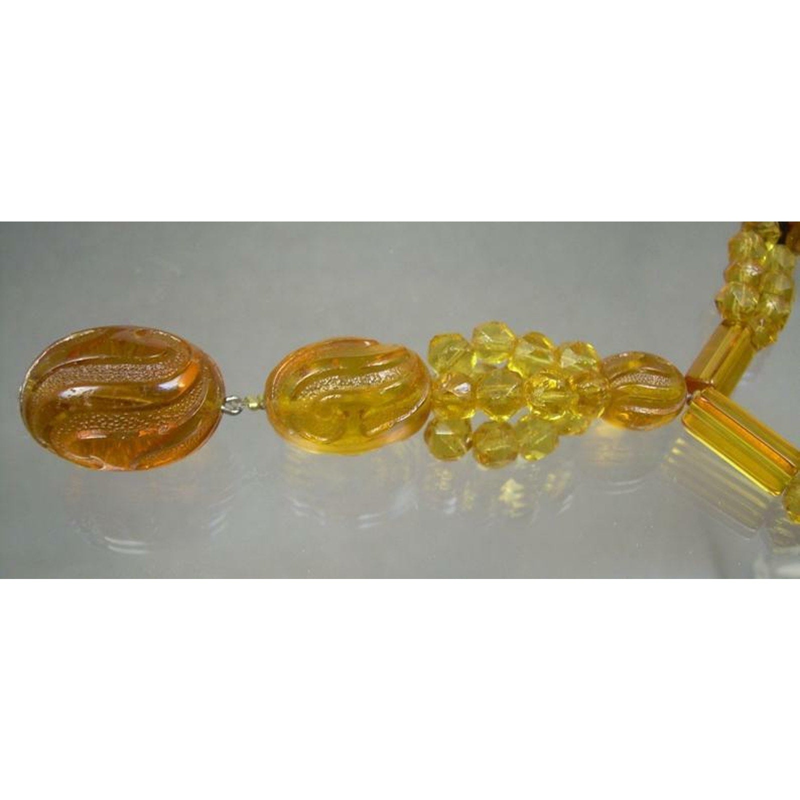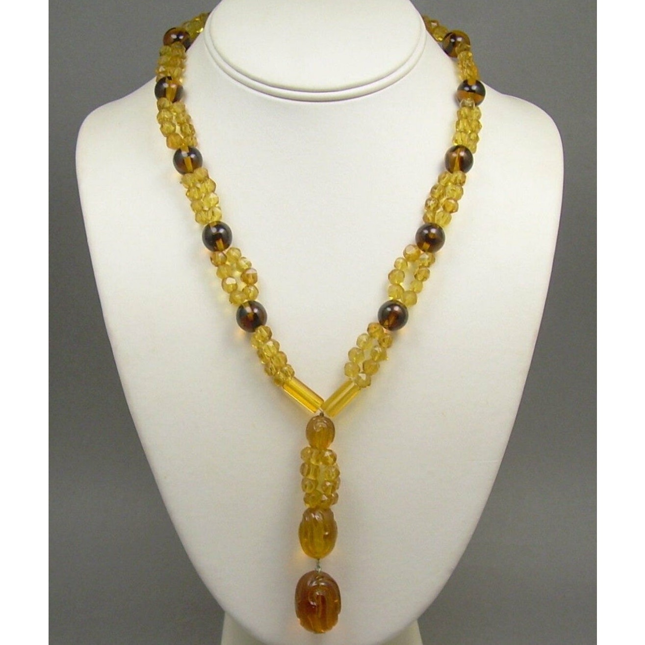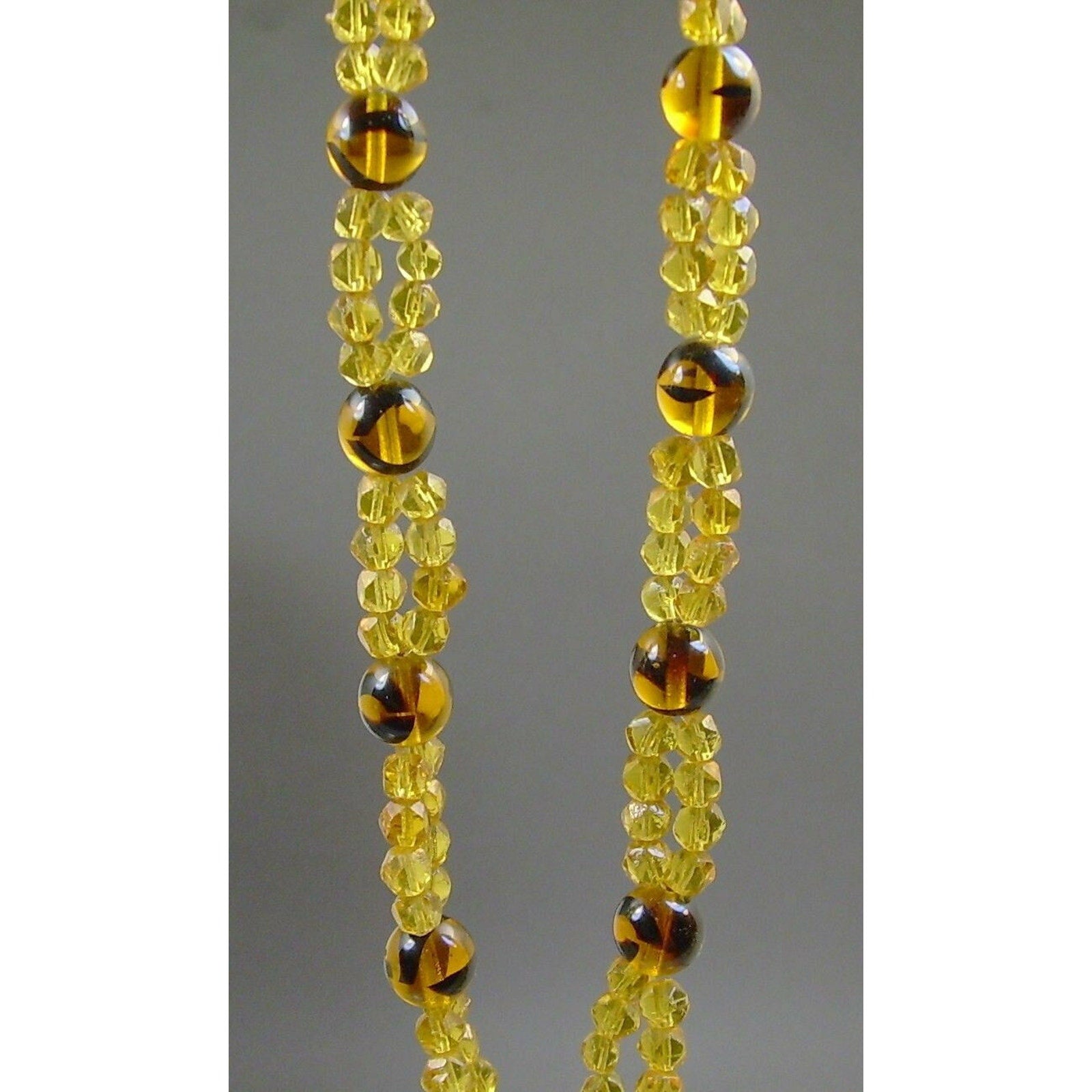 Vintage Czech Art Glass Jewelry Beaded Necklace - Brown, Amber, Gold, Round and Faceted Beads