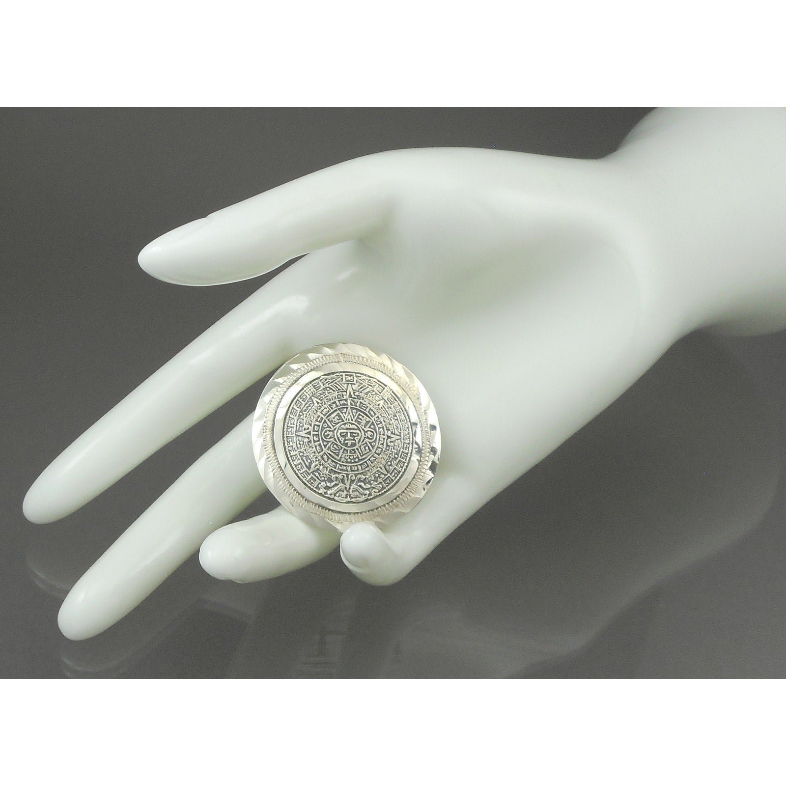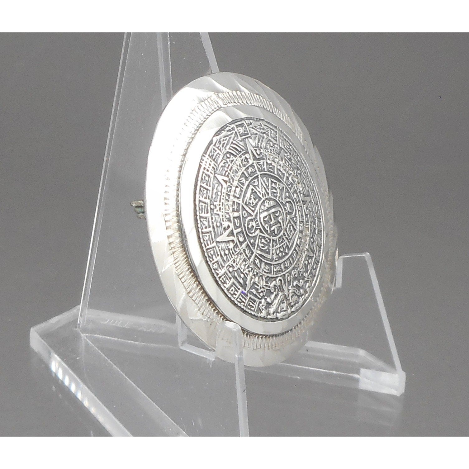 Vintage Taxco Mexican Artisan Brooch / Pendant - Sterling Silver Mayan Calendar Pin - Handmade in Mexico, Signed EMF, Eagle Mark