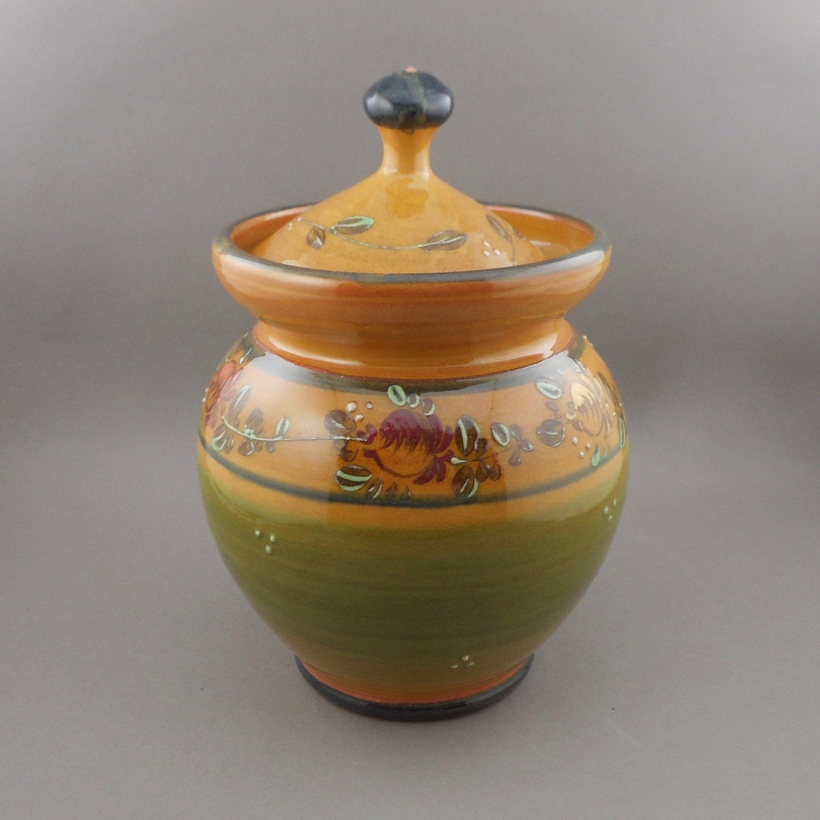 Vintage Veronique Pichon French Rose Design Small Lidded Jar Canister - Artisan Pottery, Uzes, France