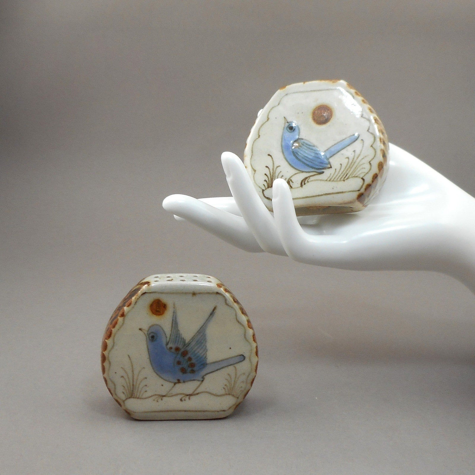 Vintage Ken Edwards Bird Design Creamer and Sugar Bowl Set - Artisan Pottery Mexico