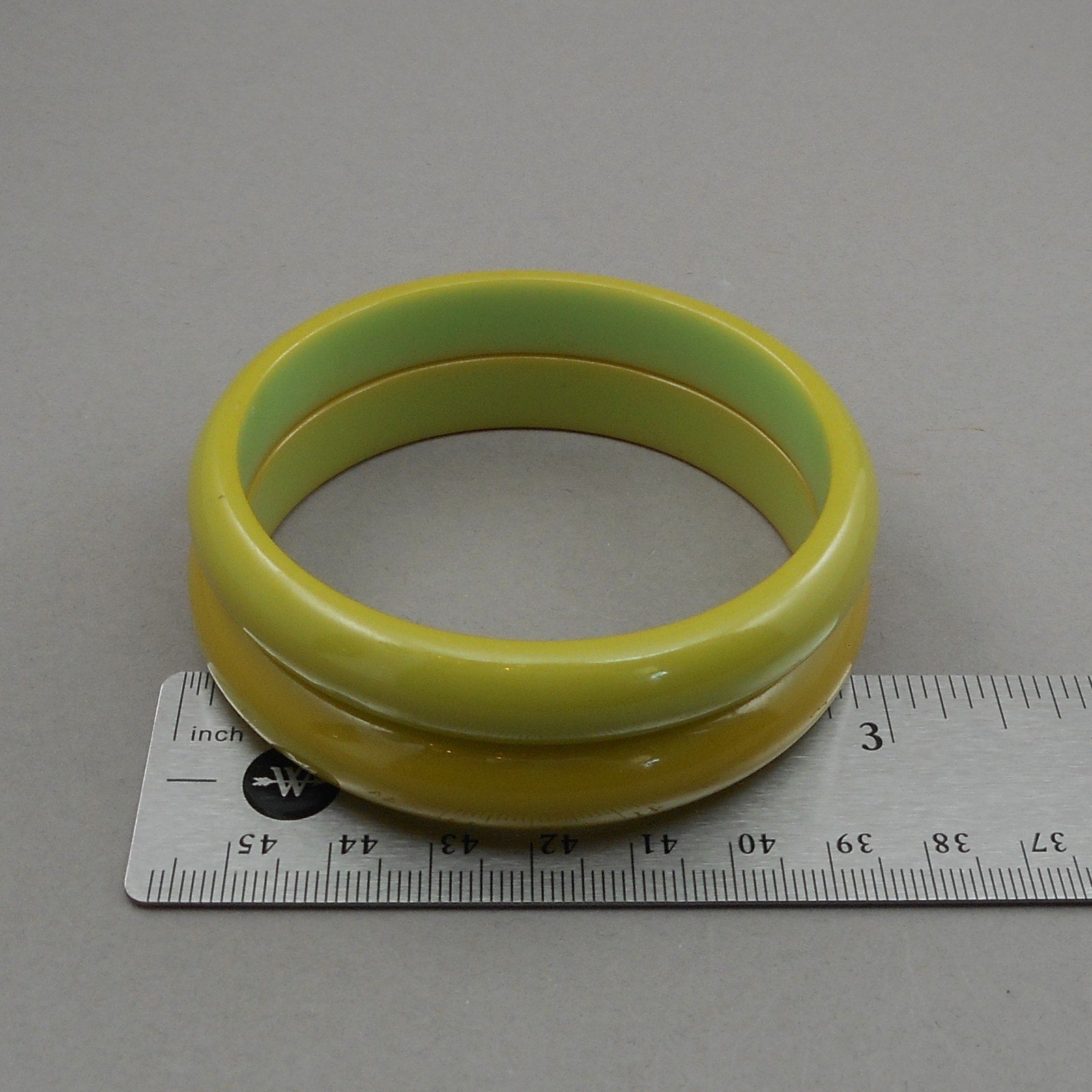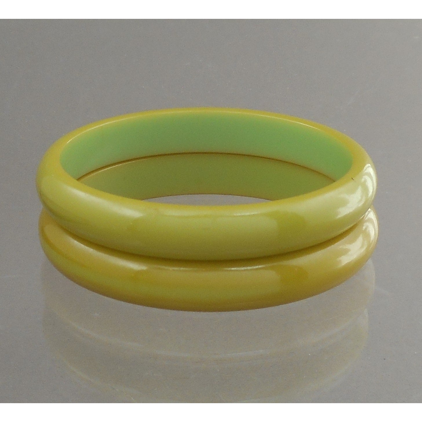 2 Vintage Authentic Carved Bakelite Bangle Bracelet - Green Opaque Plastic - Simichrome Tested