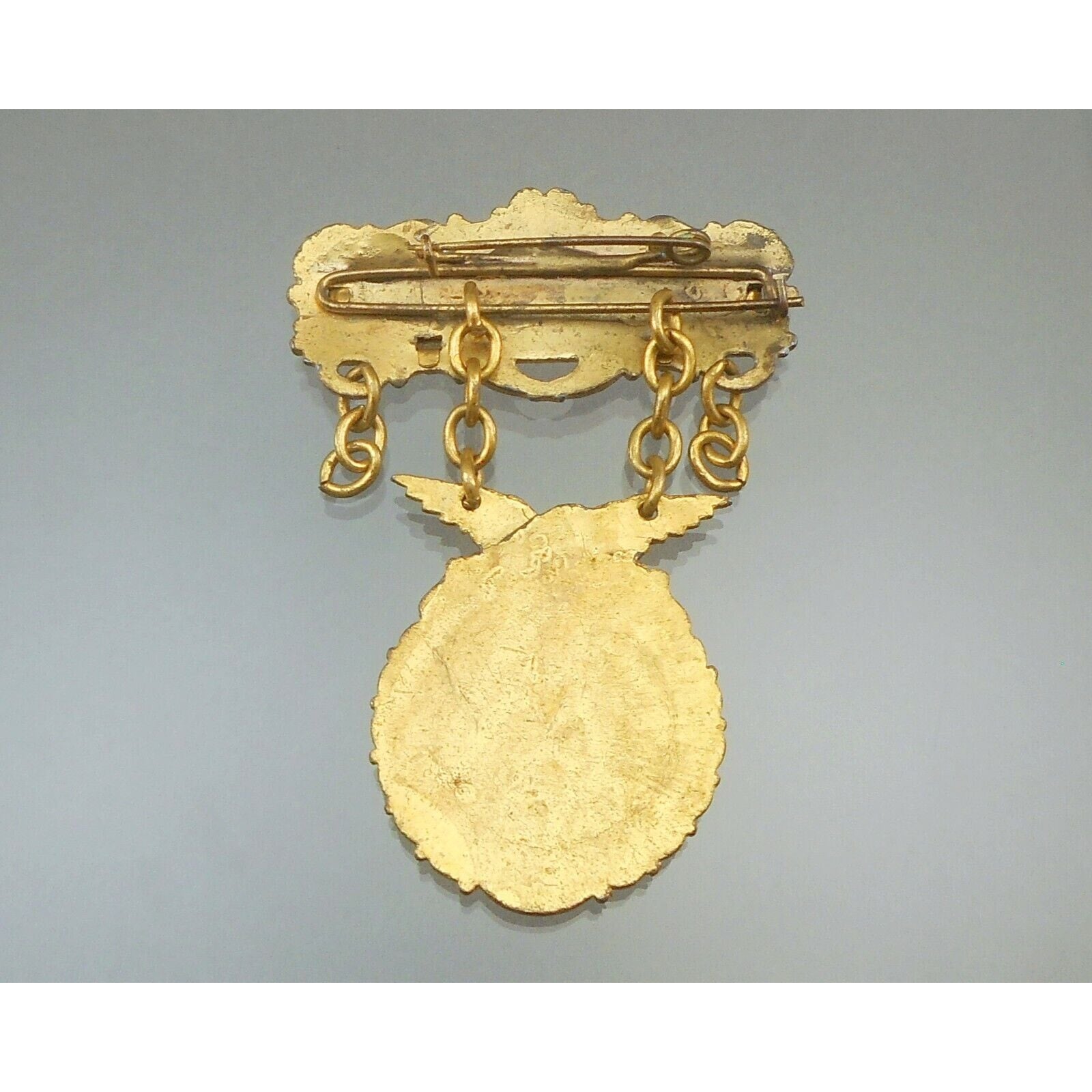 Antique Polish Gilded Catholic Religious Miraculous Medal Pin Panna Maria Mary Celluloid
