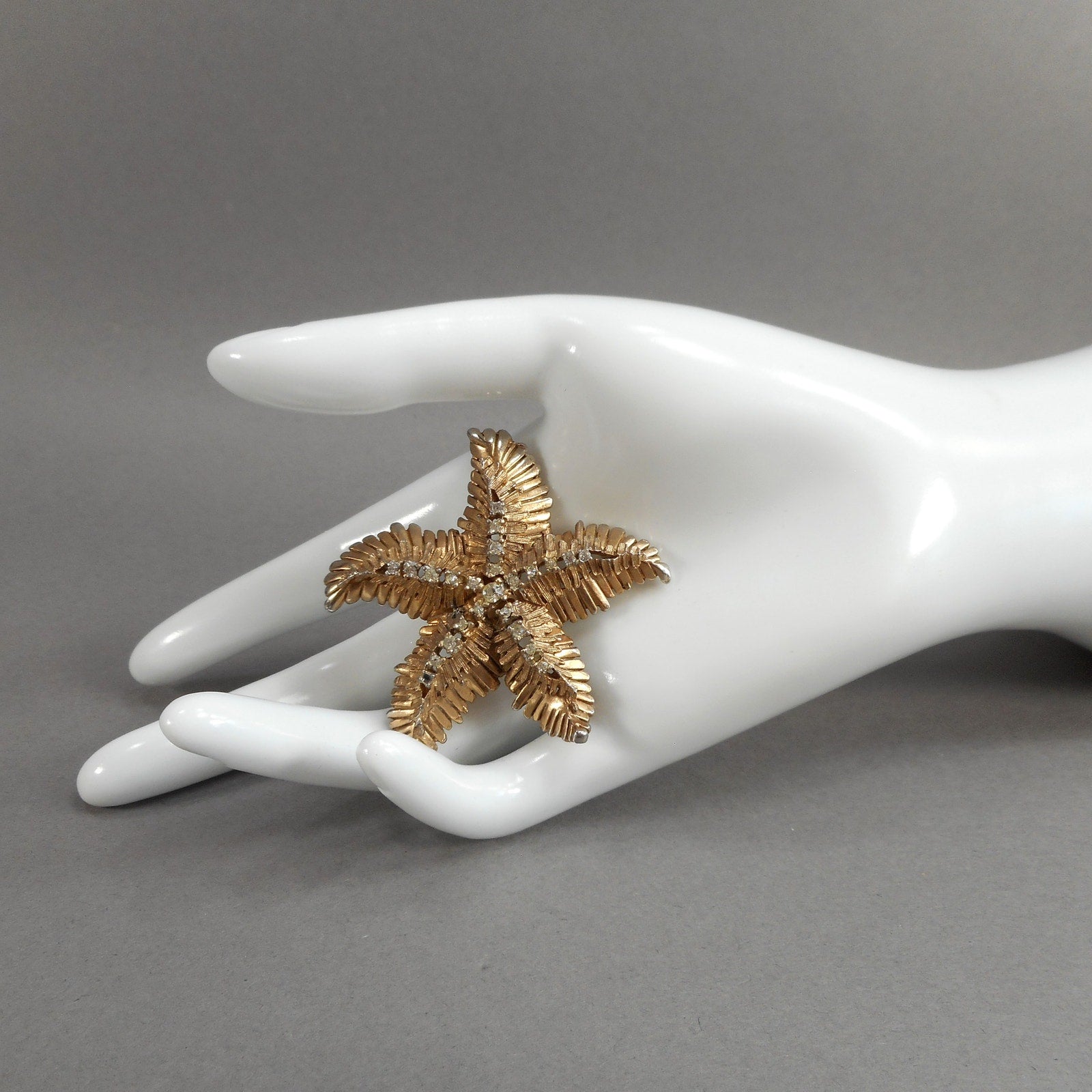 Vintage 1950s HAR Hargo USA Starfish Brooch - Large Rhinestone, Gold Tone Signed American Designer Pin - Estate Costume Jewelry Collection