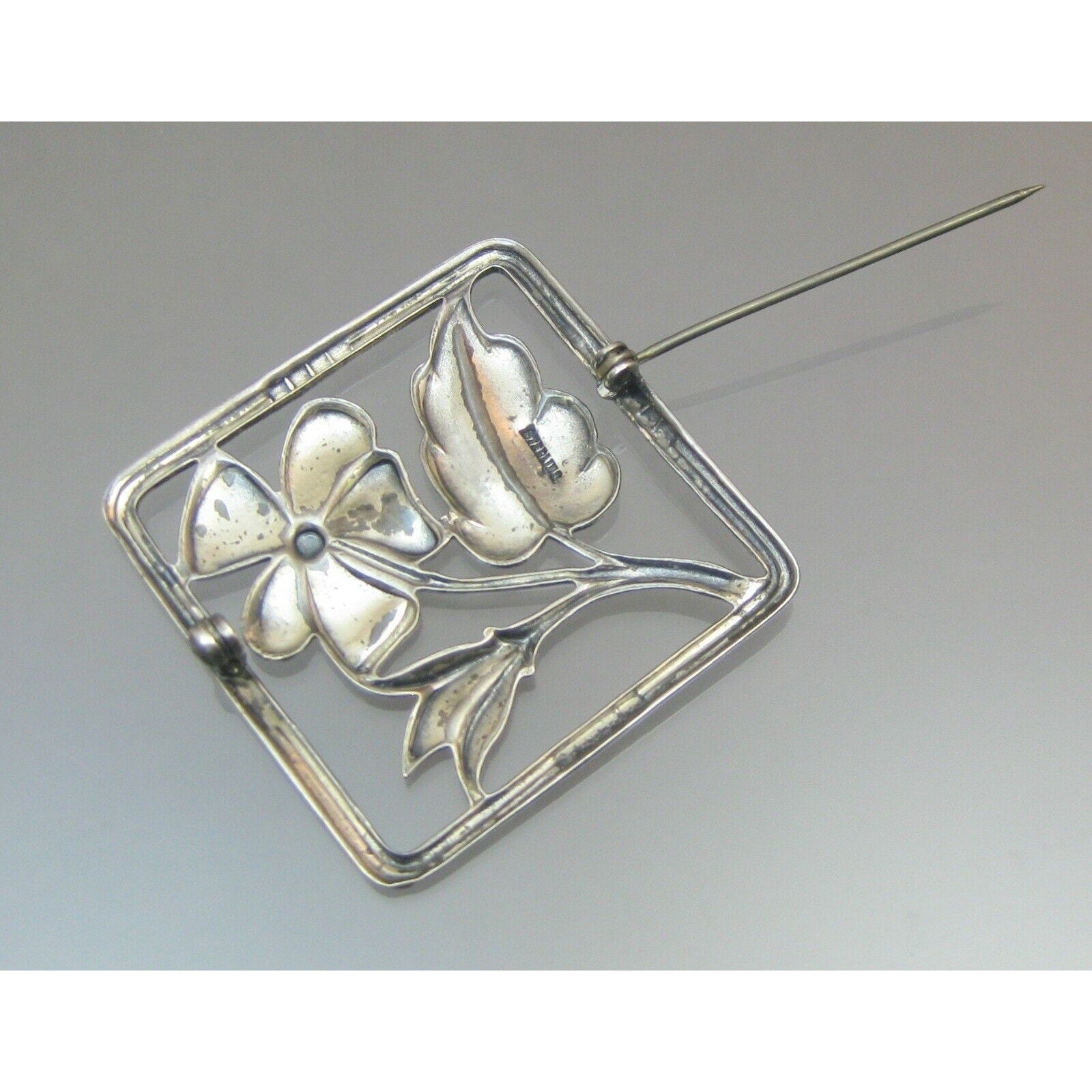 Vintage Sterling Silver Arts & Crafts Style Brooch Flower Pin Estate Jewelry